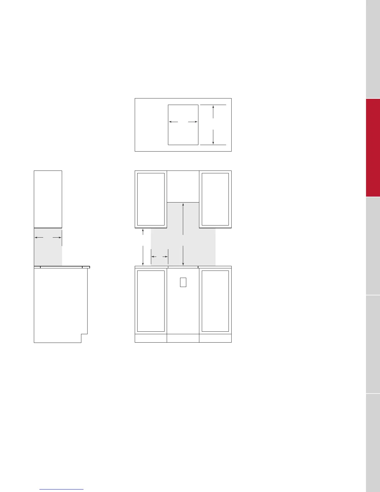 NOTE: Shaded area above countertop indicates minimum clearance to combustible surfaces,