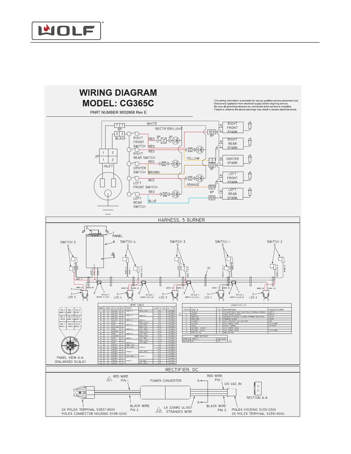 Wolf CG365P/S - Wiring Diagrams; Wiring Diagram Model CG365 C; Harness and Rectifier Diagrams
