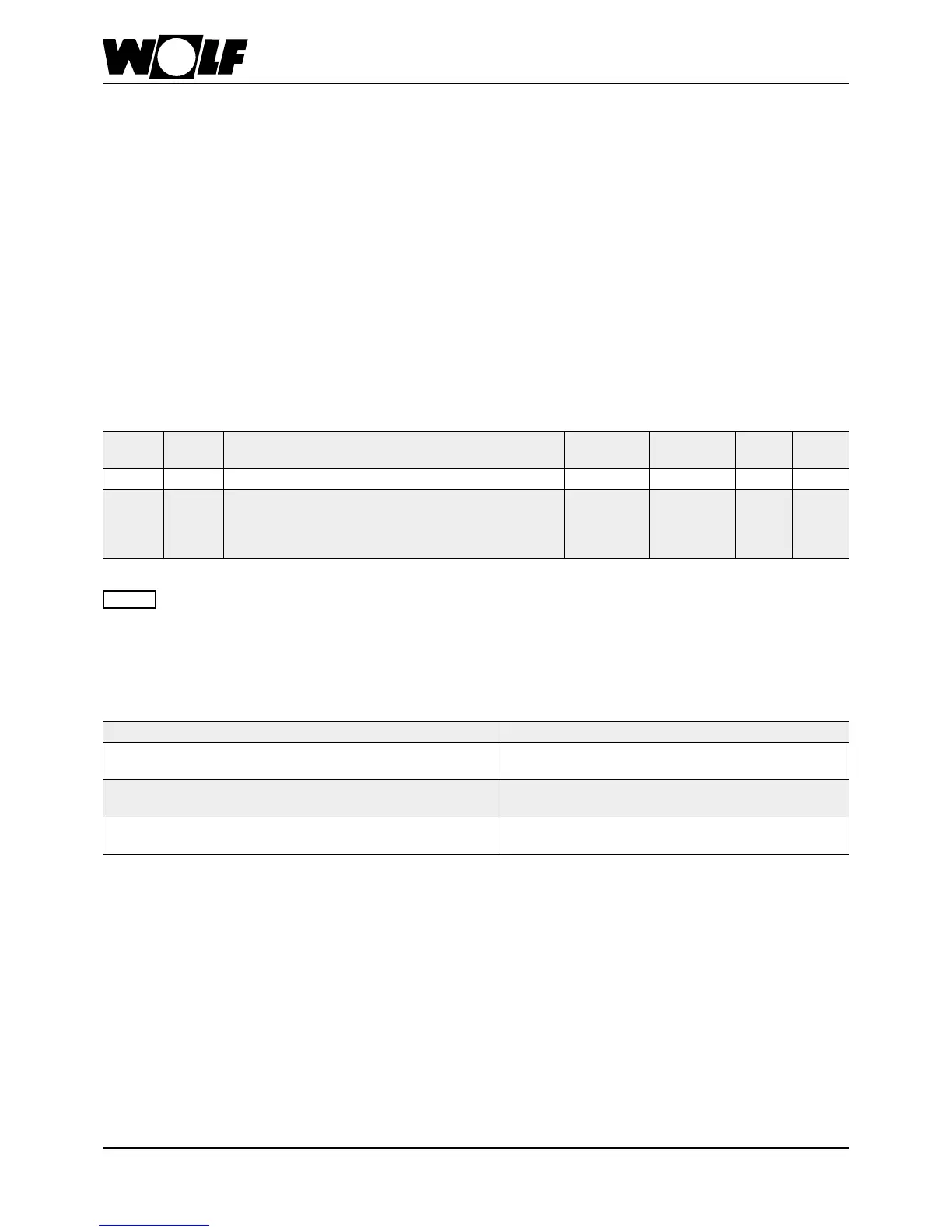 The settings in column 2 apply to Wolf control systems with BM programming unit