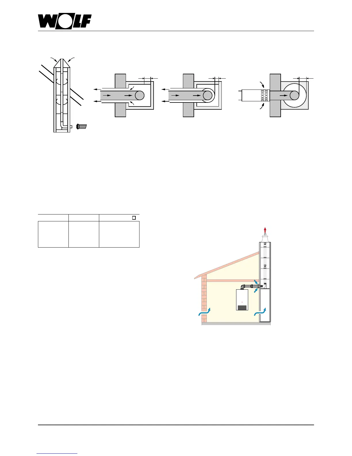 Wolf CGB-100 - Minimum Duct Sizes for Flue Systems; Shaft Air;Flue Gas Routing