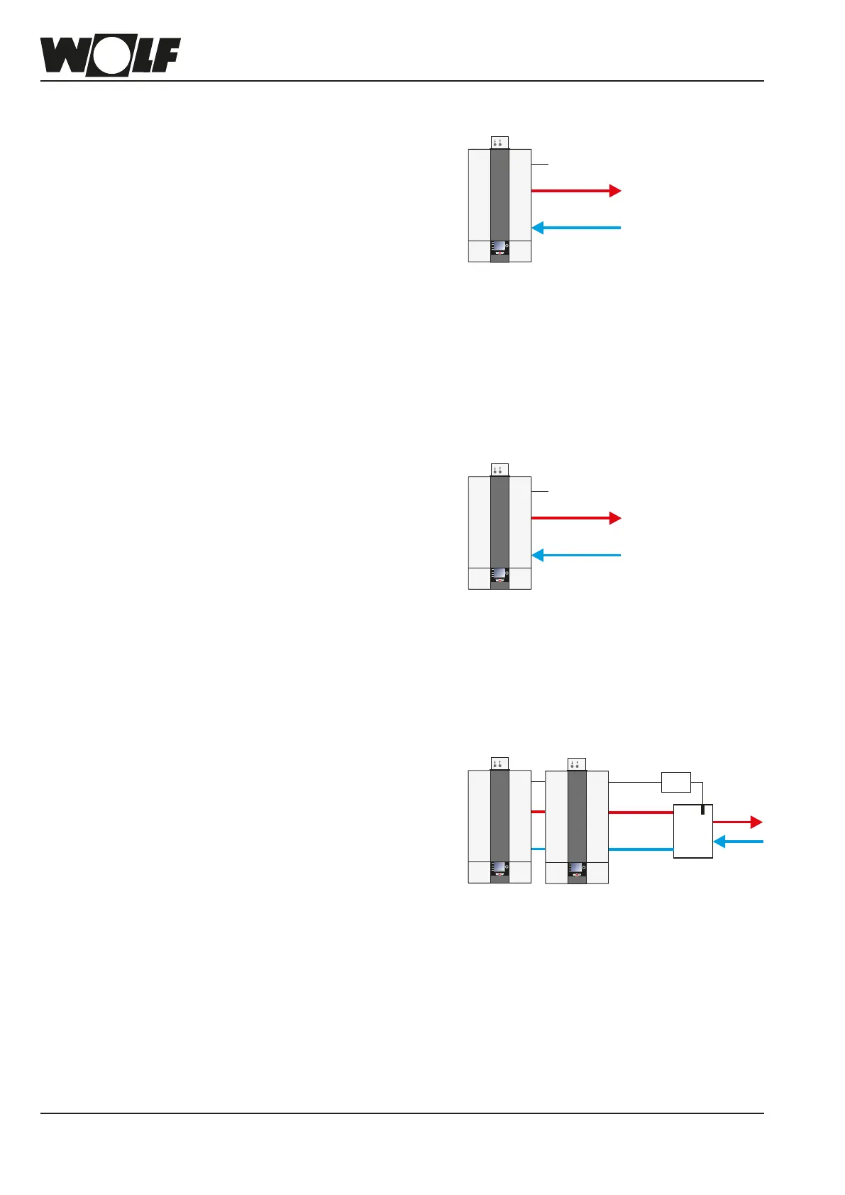 In these schematic diagrams, shut-off valves, air vent valves and safety equipment are not fully