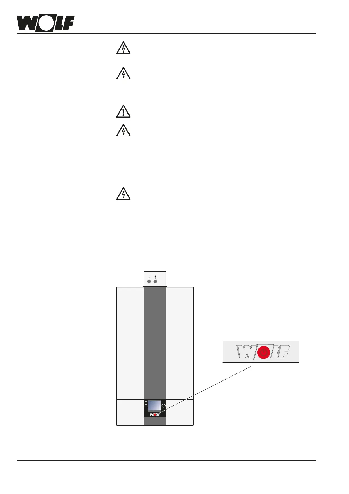 The ON/OFF switch (integrated in the Wolf logo) switches the appliance off across all