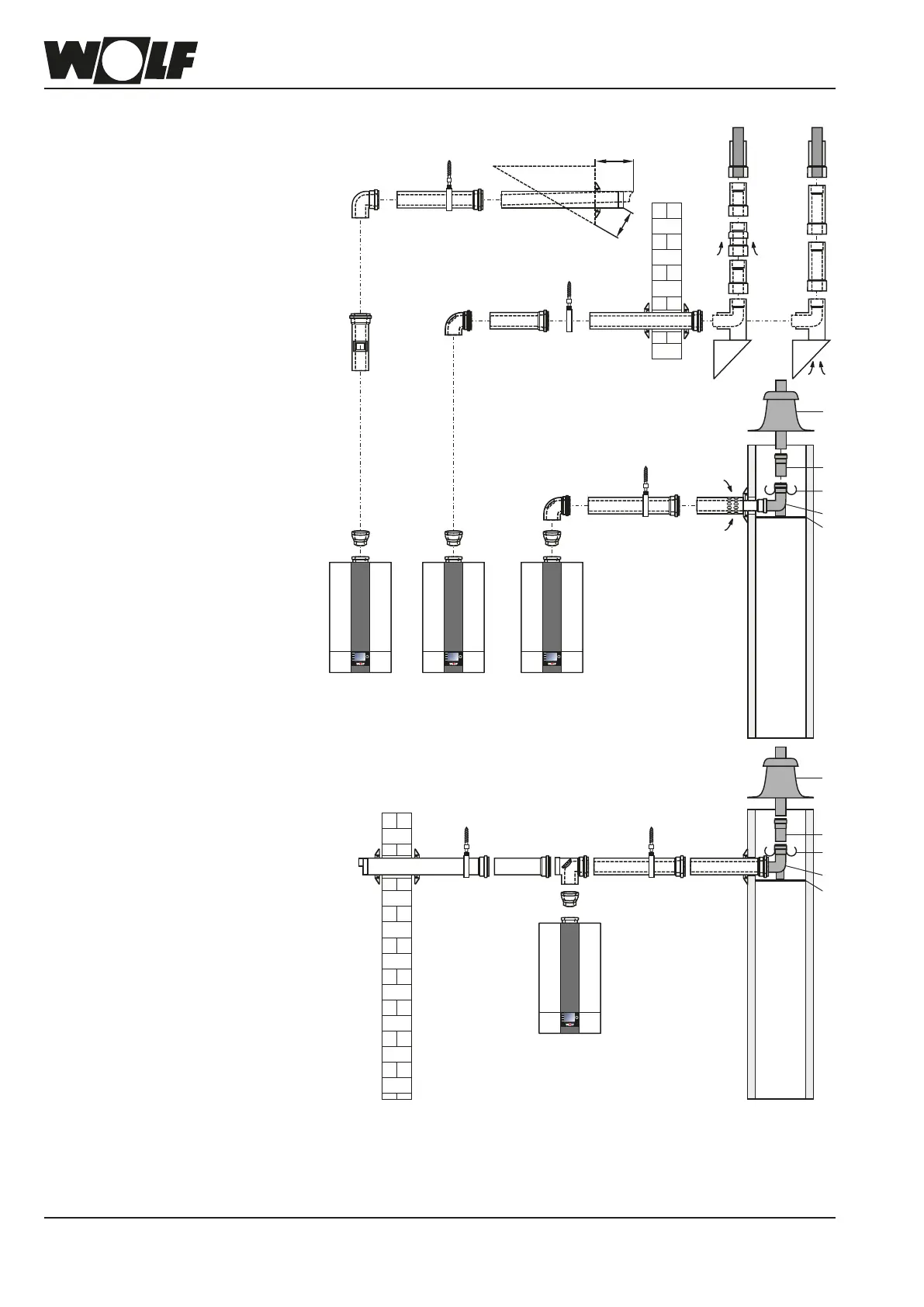 Installthehorizontaluepipewithaslopeofapprox.3°(6cm/m)towardstheboiler.