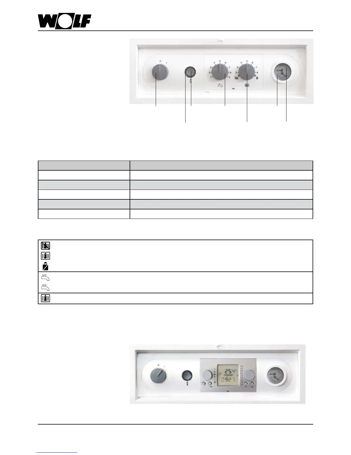 DHW temperature selector, boiler 1 (15°C) ... 9 (65 °C) 7 (50°C) recommended
