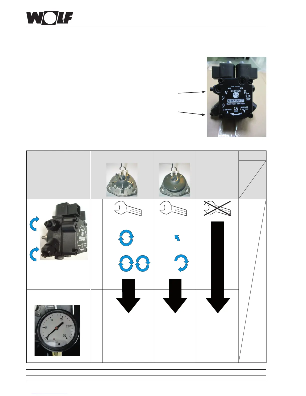 Wolf COB-40 - Oil Pump COB-2-20;29;40 Setting Pump Pressure; Factory Setting Pump Pressure COB-2-20; Setting Pump Pressure COB-2-29;40