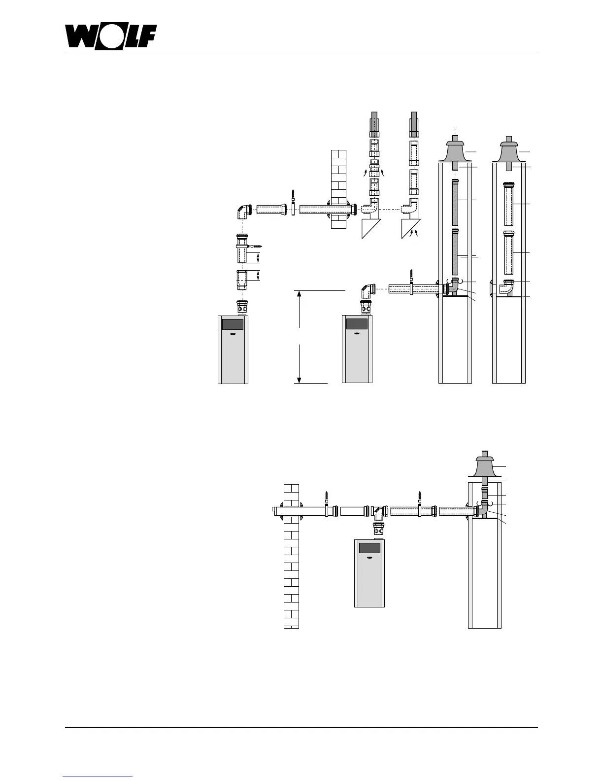 Install the horizontal ue with a fall of approx. 3° (6 cm/m) towards the boiler. Route the