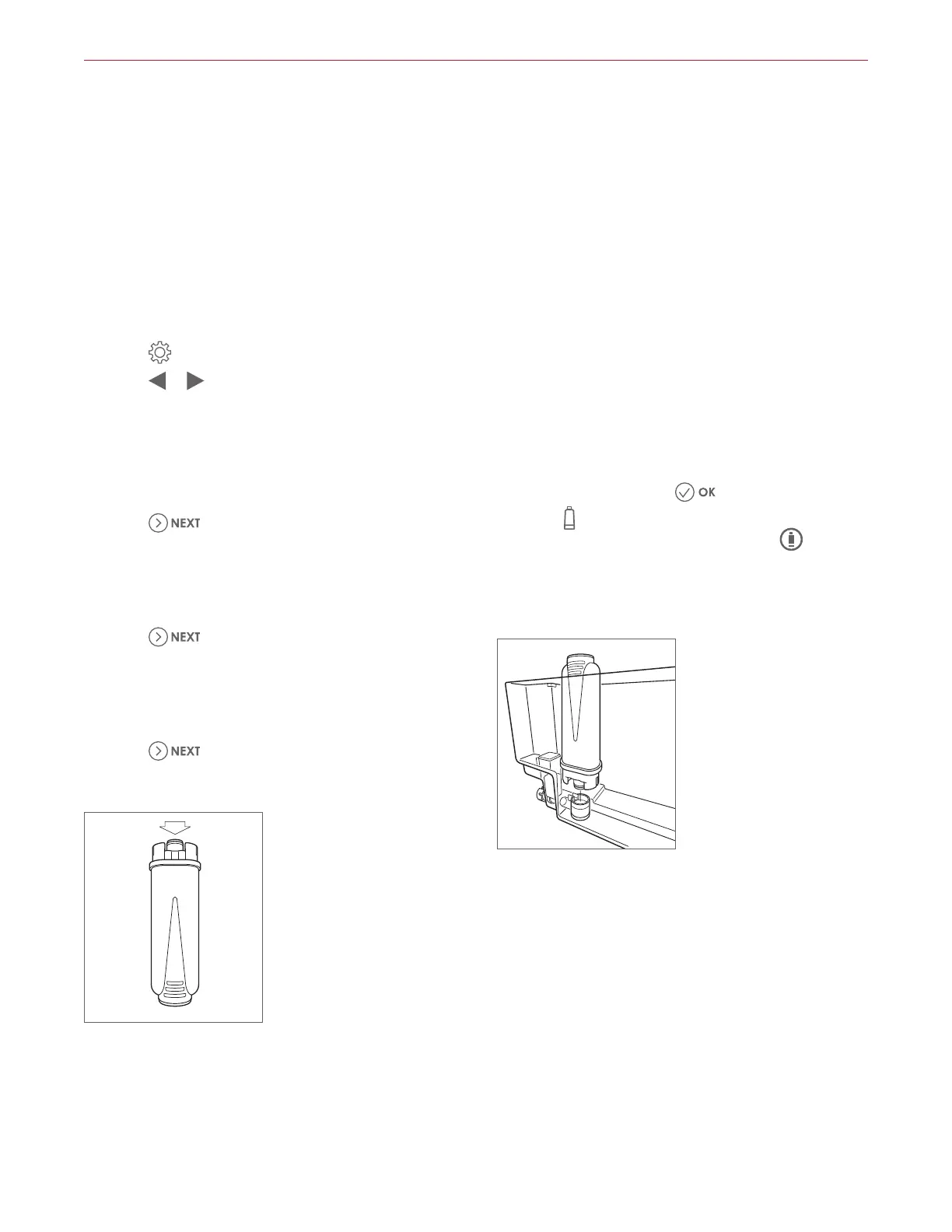 2 Press to secure the filter to the housing. "Insert water