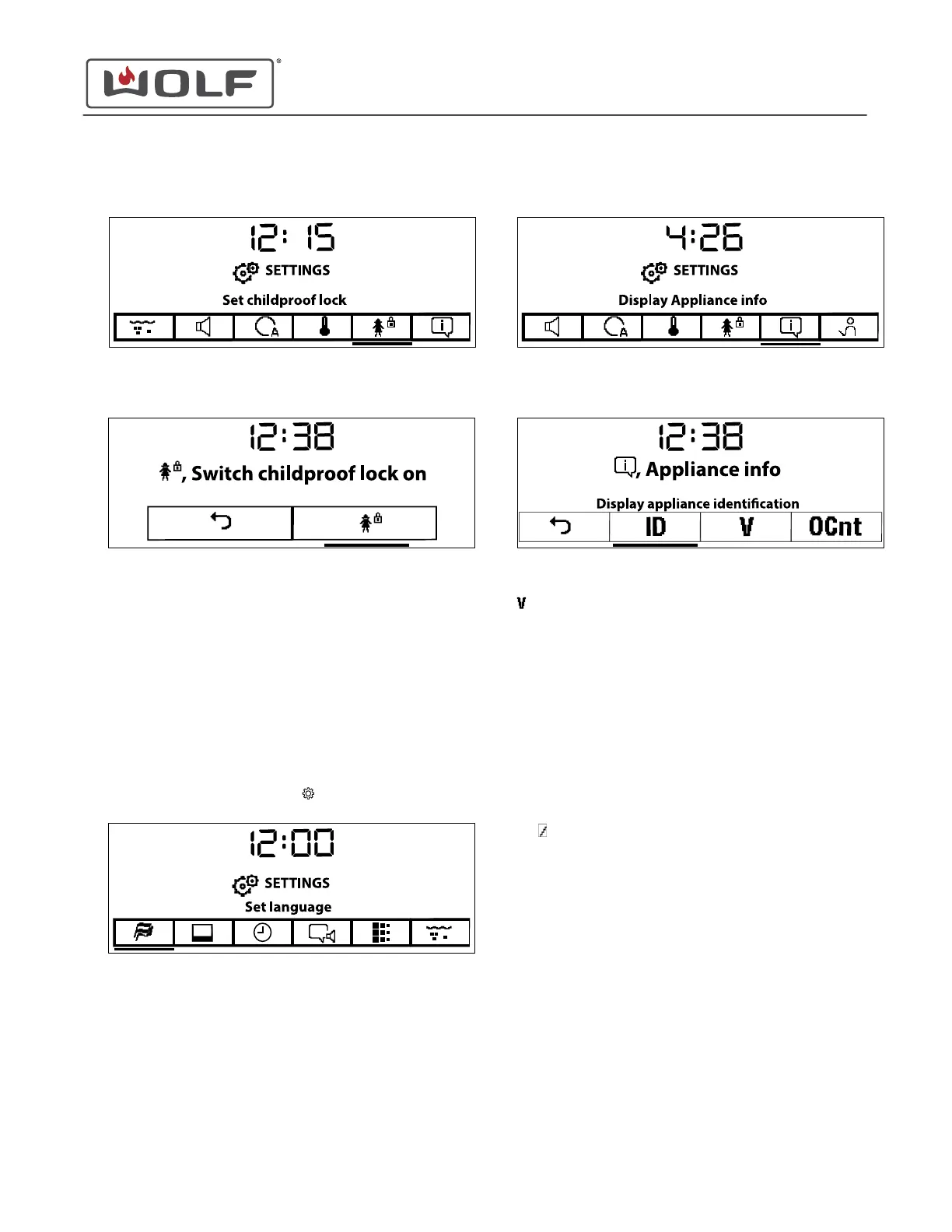 2 Touch the right arrow key to move to Set Childproof Lock.