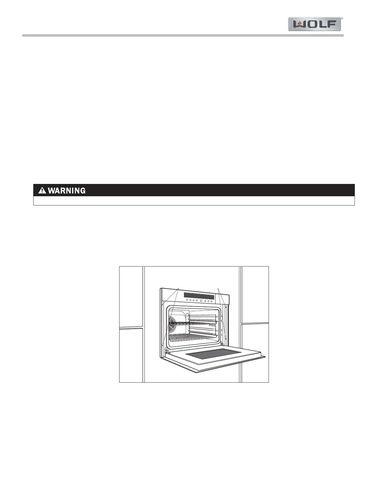 3. Once the oven is fully positioned in the opening, open the oven door and locate the four mounting holes on the