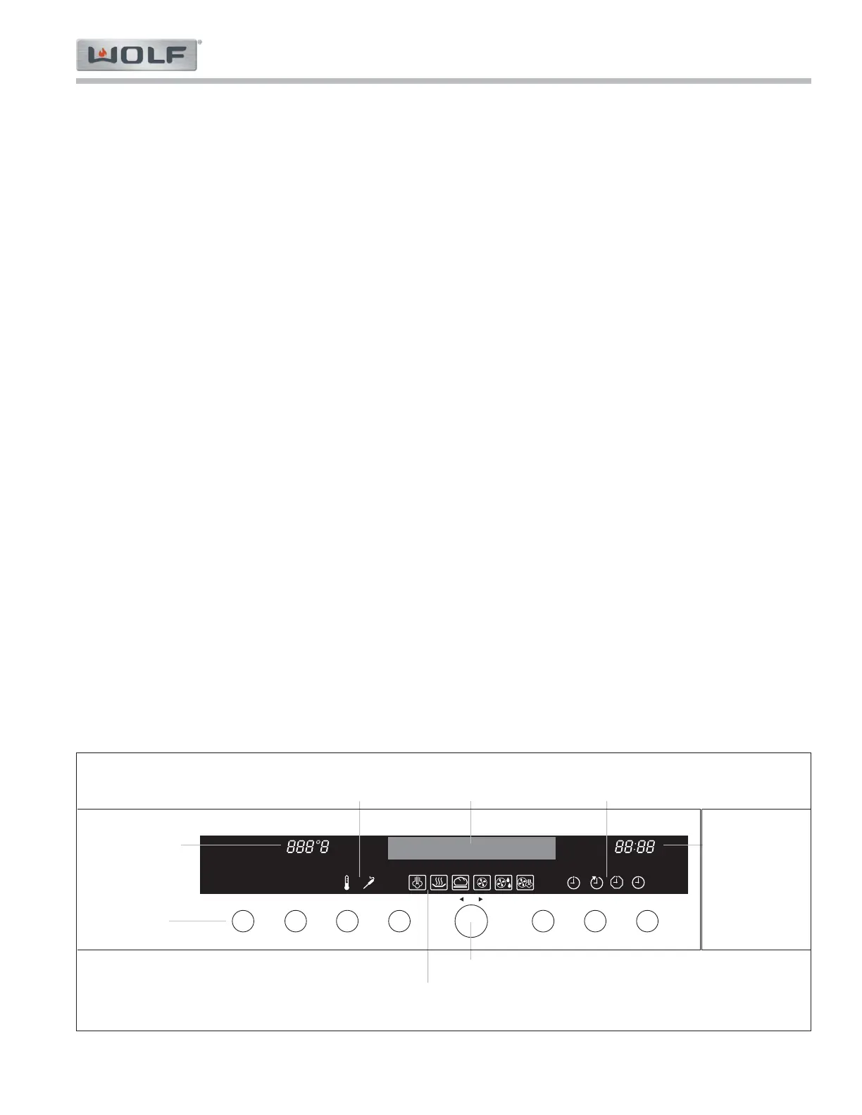 cooking temperature and probe setpoint. The center text display is the informational readout used for setting differ-