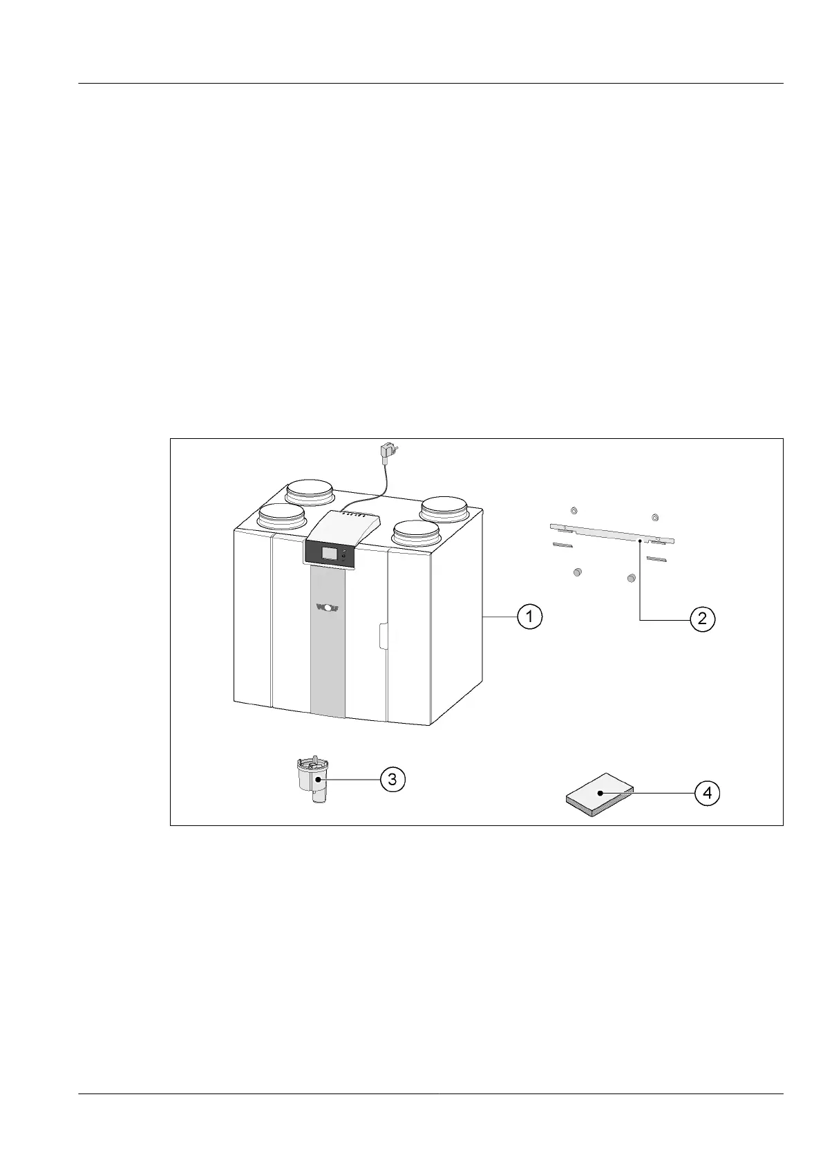 Before installation of the heat recovery appliance is started, check that it has been supplied in complete