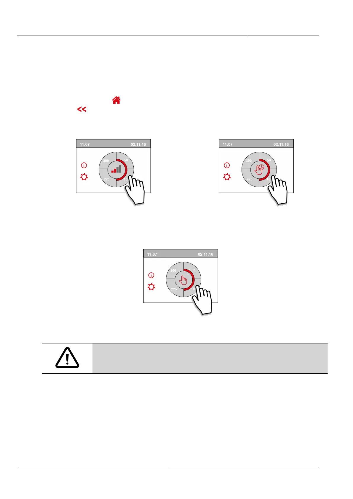 By pressing one of the quarter circles on the main screen, the ventilation mode can be quickly adjusted.