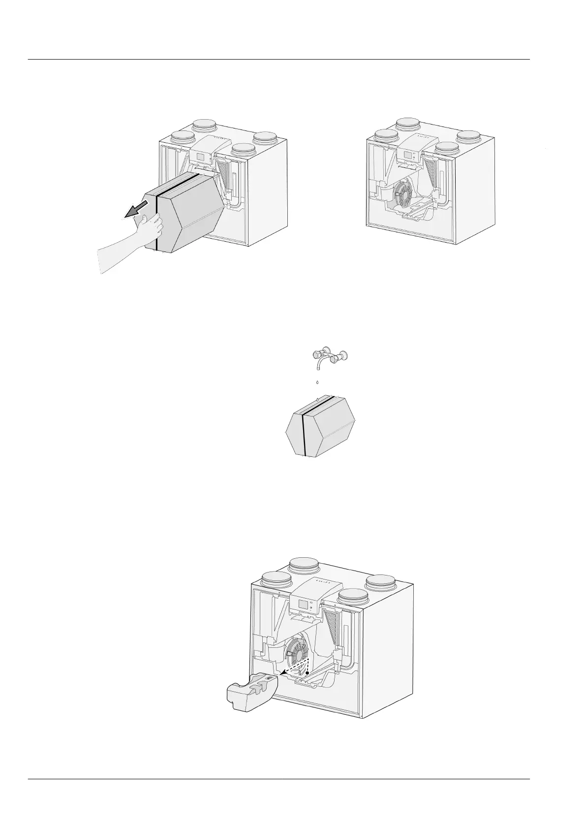 4 Remove the heat exchanger. Be careful not to damage the foam parts in the appliance.
