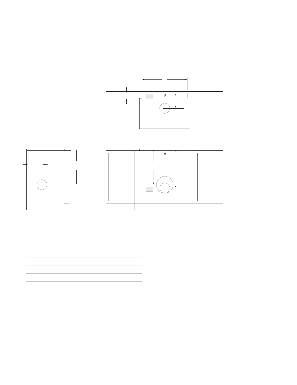 10" (254) para descarga alrededor o en la parte posterior. La línea central indica el centro del recorte del ventilador de tiro descendente.