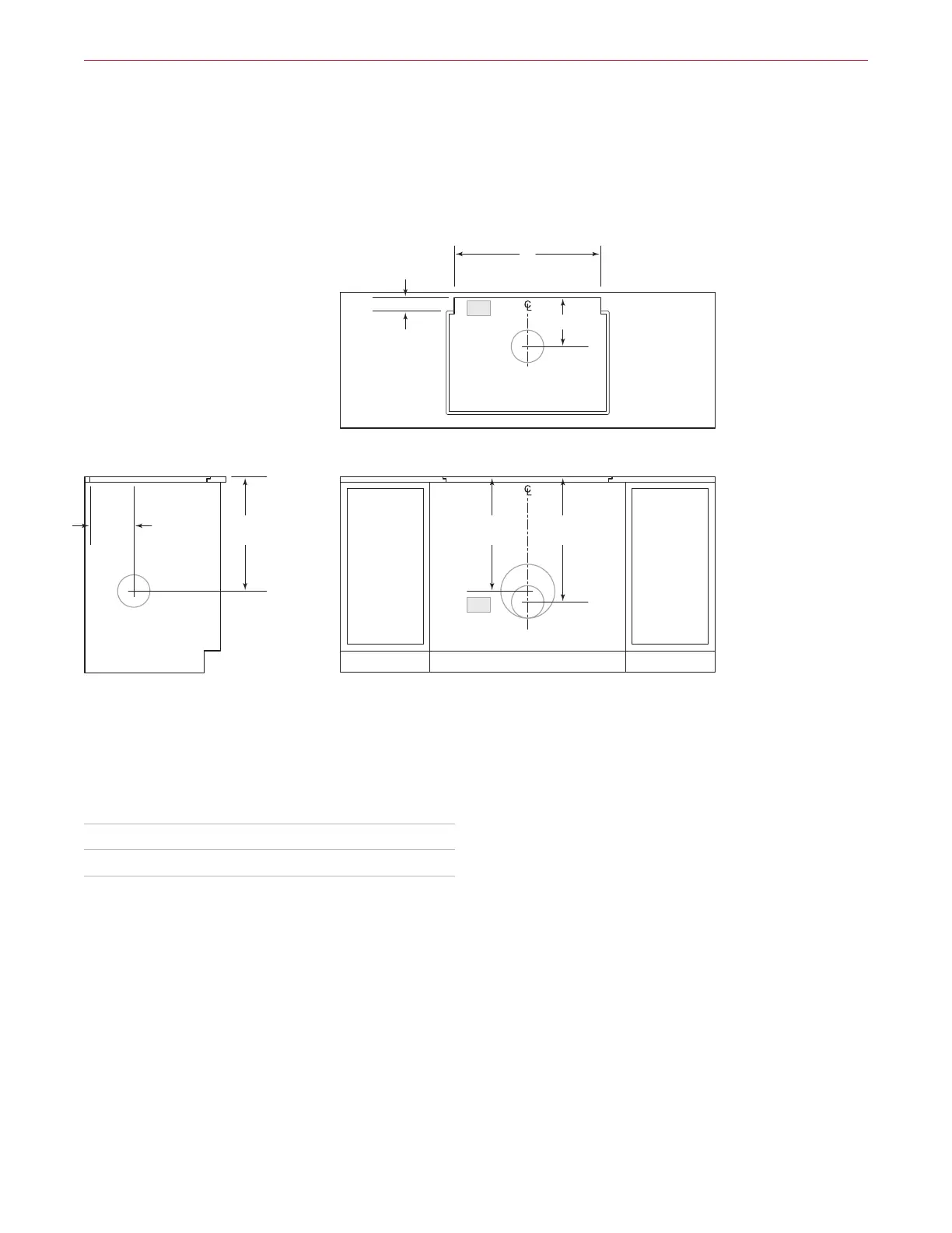 10 po (254), évacuation arrière. La ligne centrale indique le centre de la découpe de l’aspiration descendante.