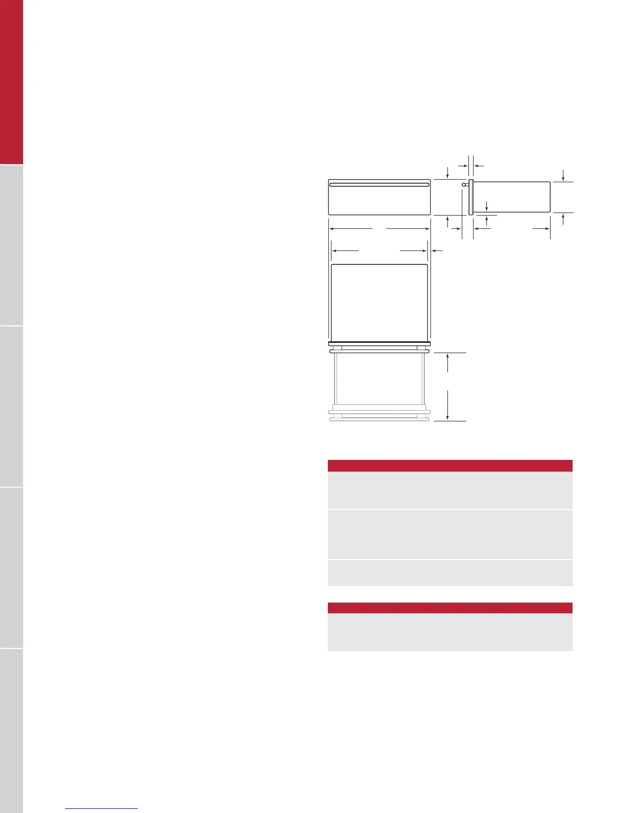 of the rangetop or grill. Dimensions for the warming drawer