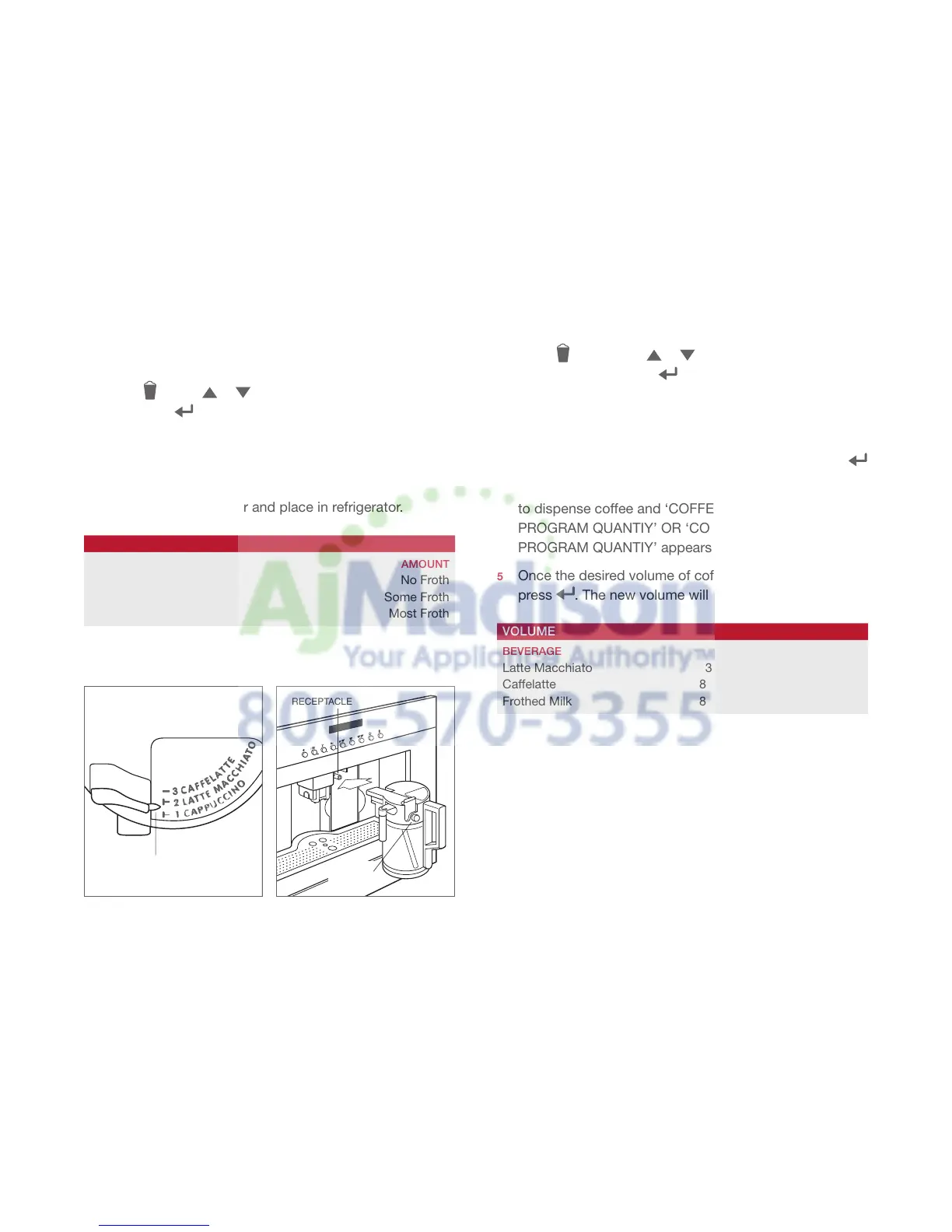 and coffee for each beverage. The maximum volume of milk