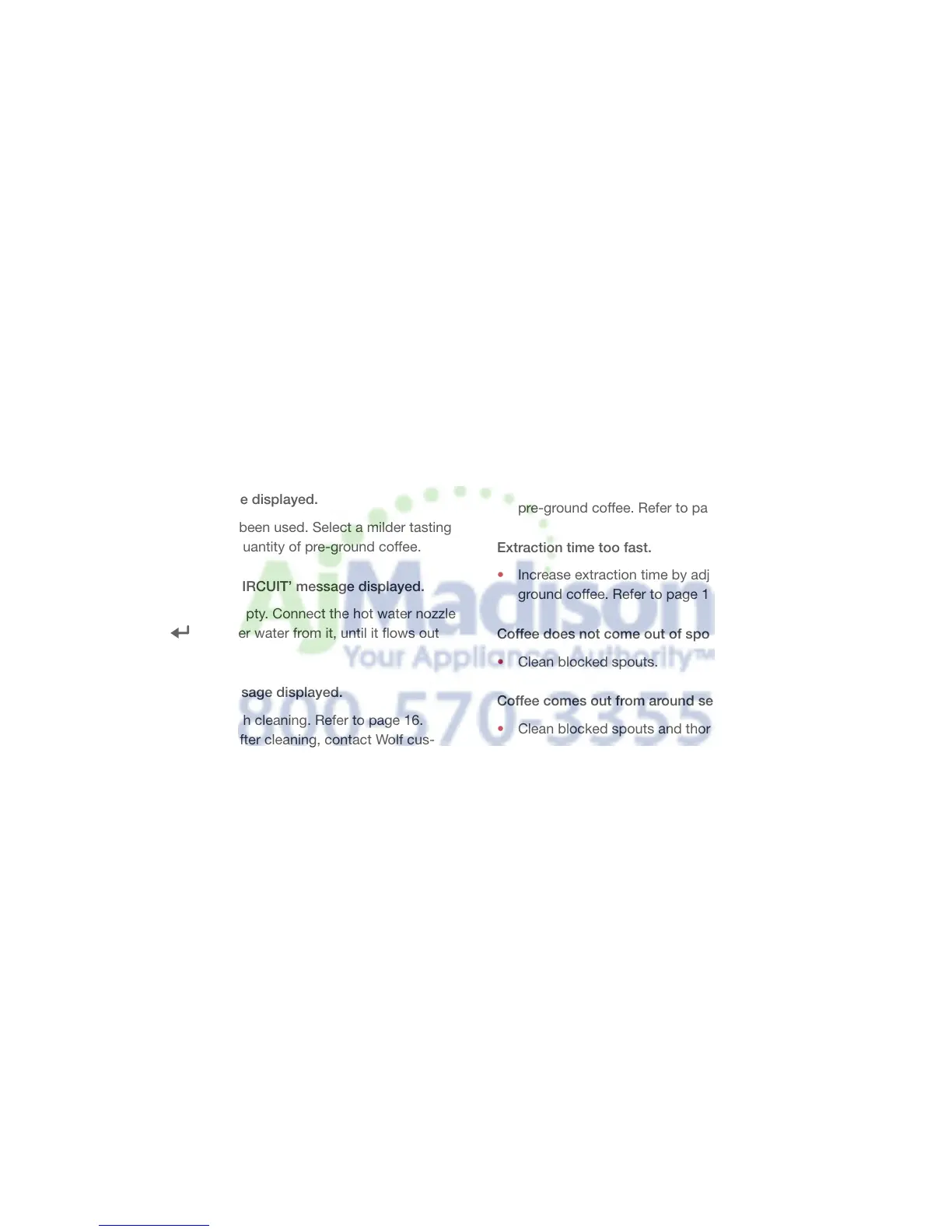 • Coffee ground too coarsely. Refer to grind adjustment on