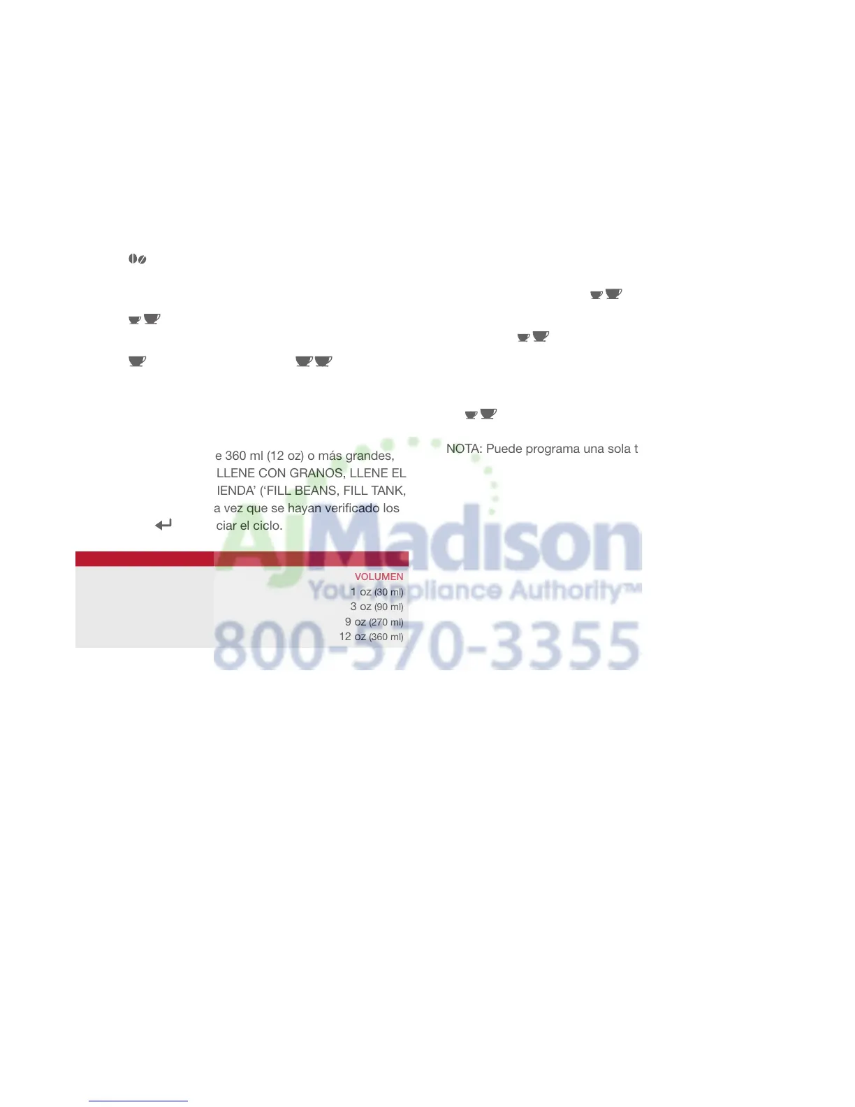 NOTA: Puede programa una sola taza de café.