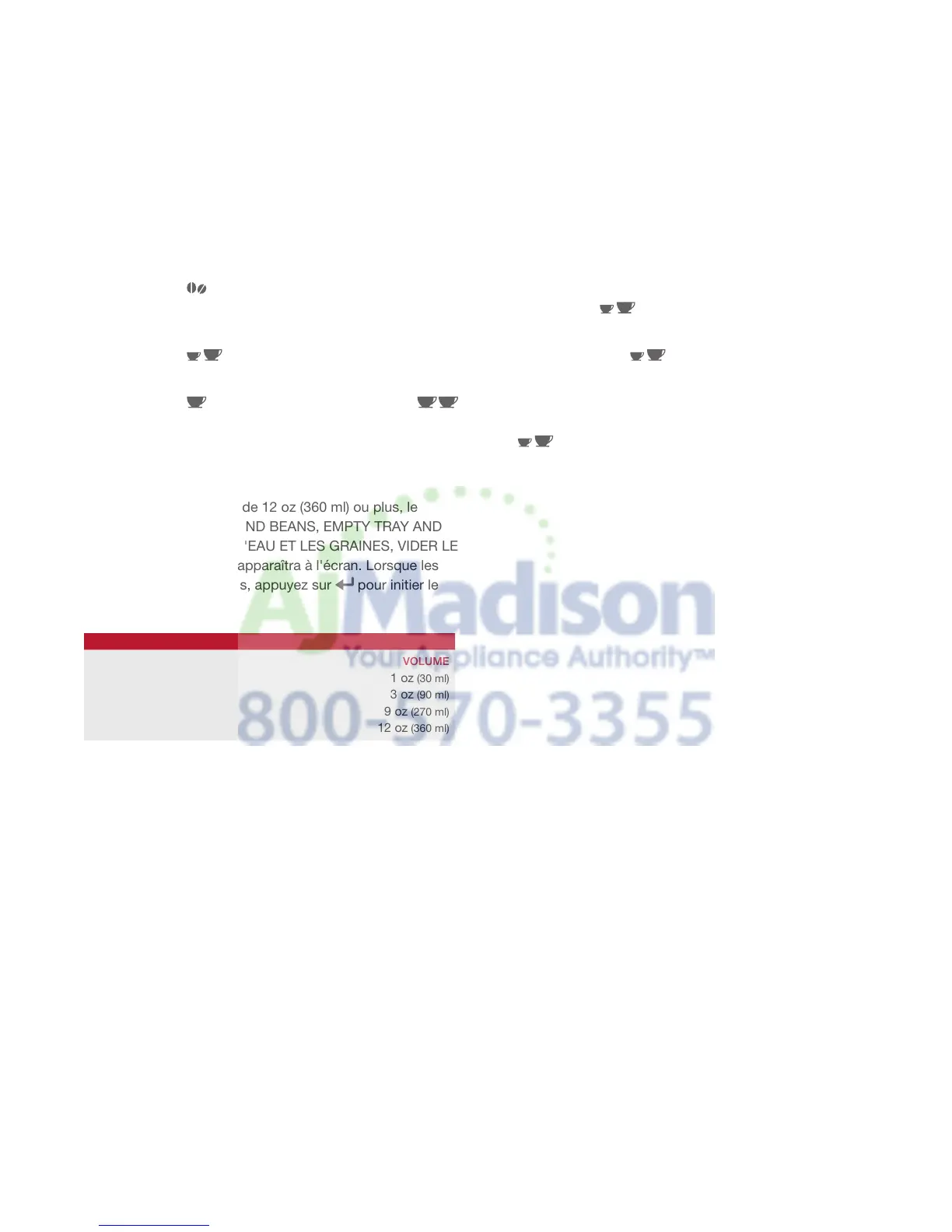 Pour toutes les boissons de 12 oz (360 ml) ou plus, le