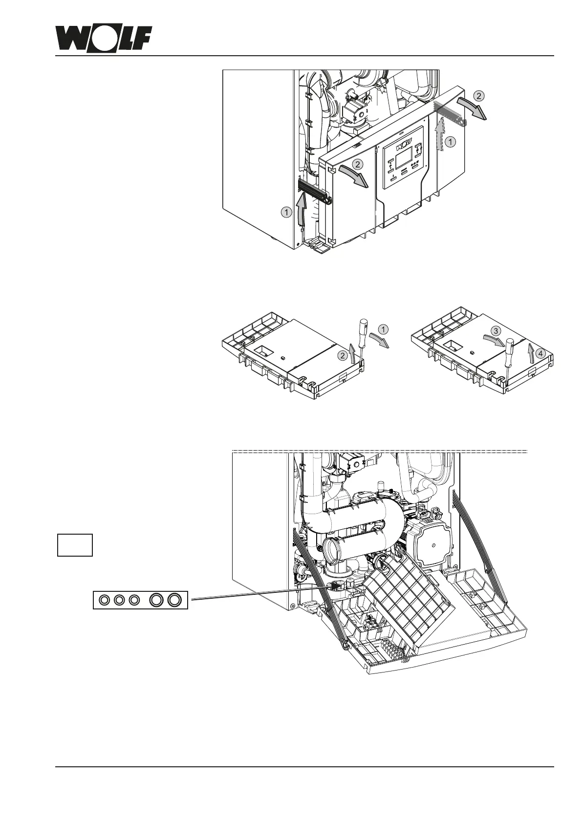 Push the retaining bracket on the casing upwards and pivot the control unit forwards.