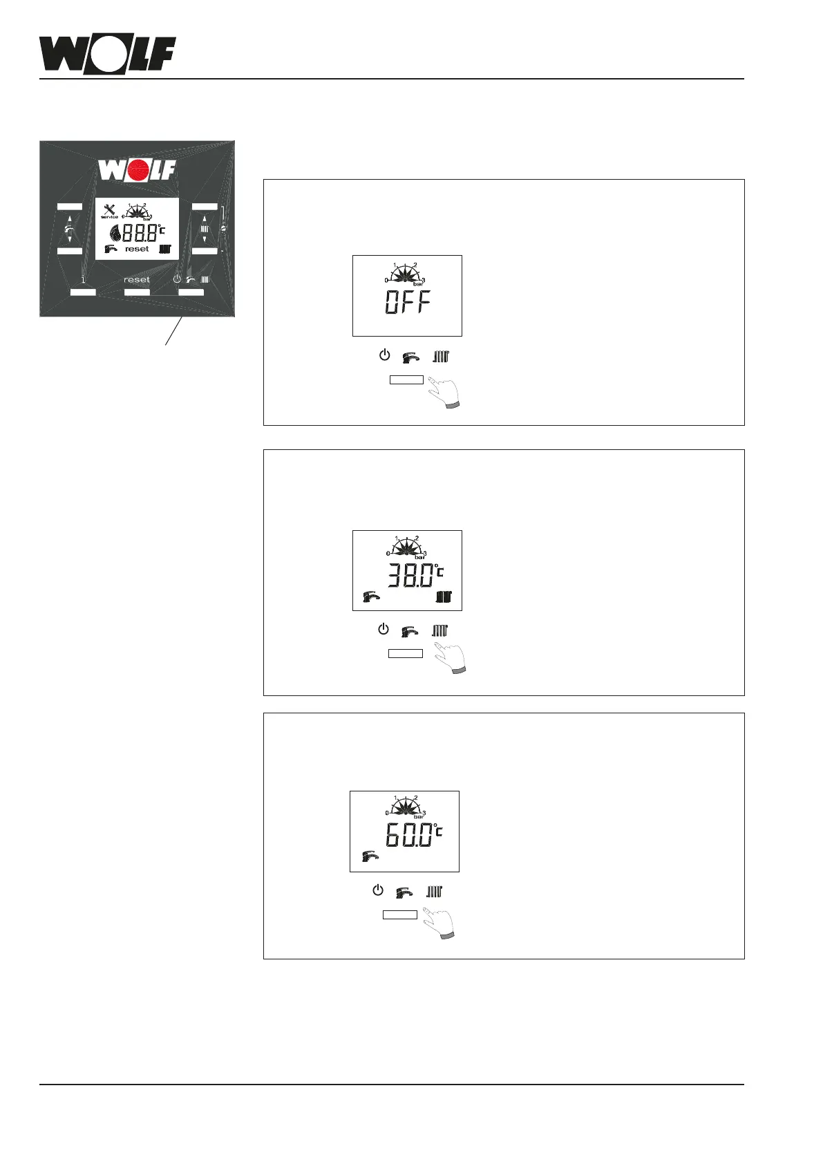 Operating mode button (5) is used to select the boiler operating mode.