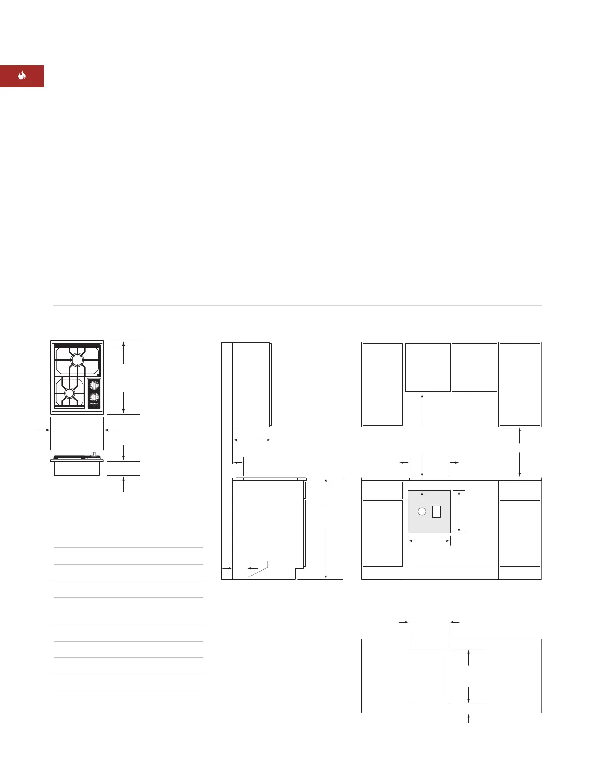 *Espacio de separación mínimo desde el corte de la superficie de cocción hasta los materiales inflamables hasta un máximo