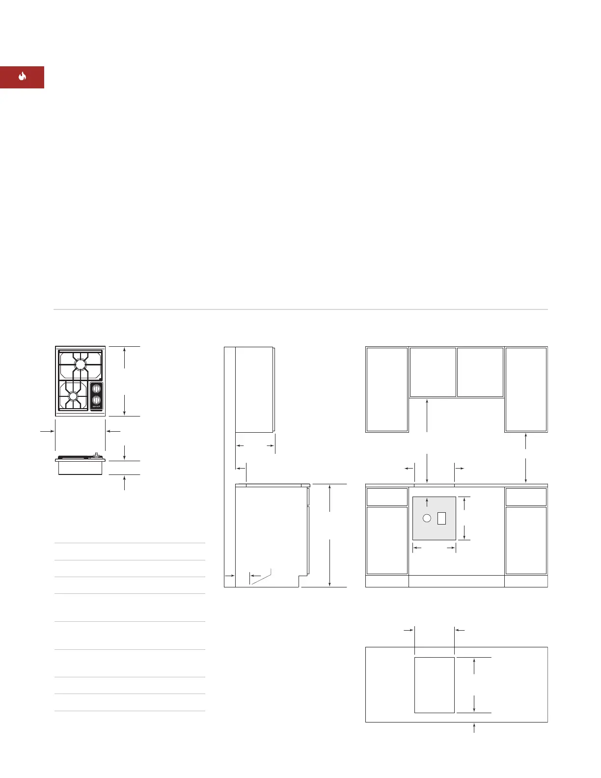 *Spazio minimo dal vano incasso del piano di cottura a materiali combustibili fino a 457 mm al di sopra del piano di lavoro.