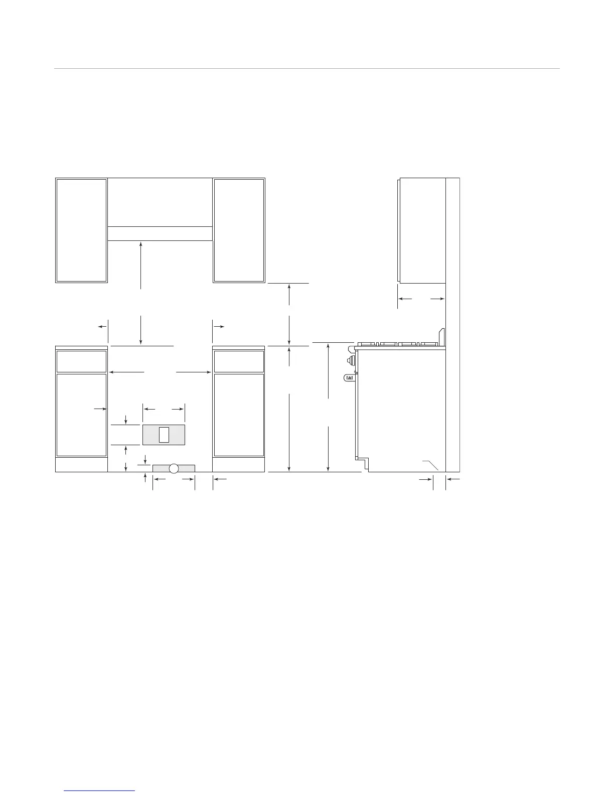 **914 mm minimum clearance from countertop to combustible materials without ventilation hood.