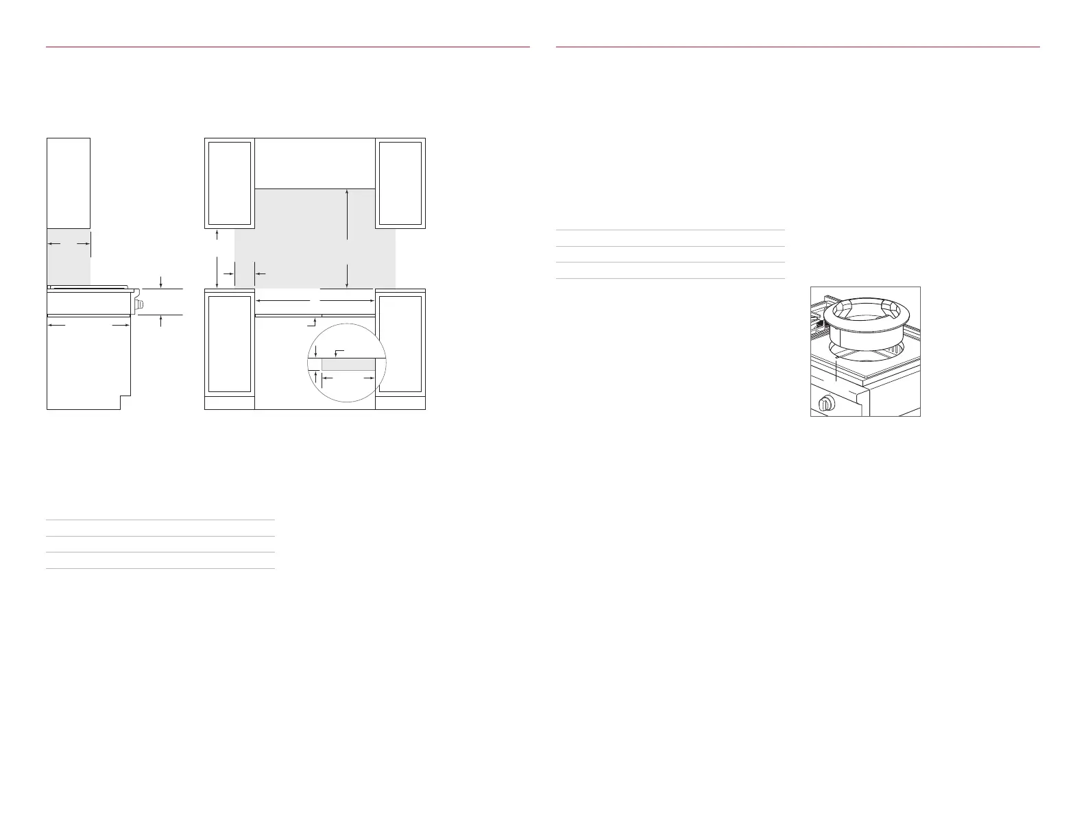 NOTE: Shaded area above countertop indicates minimum clearance to combustible surfaces,