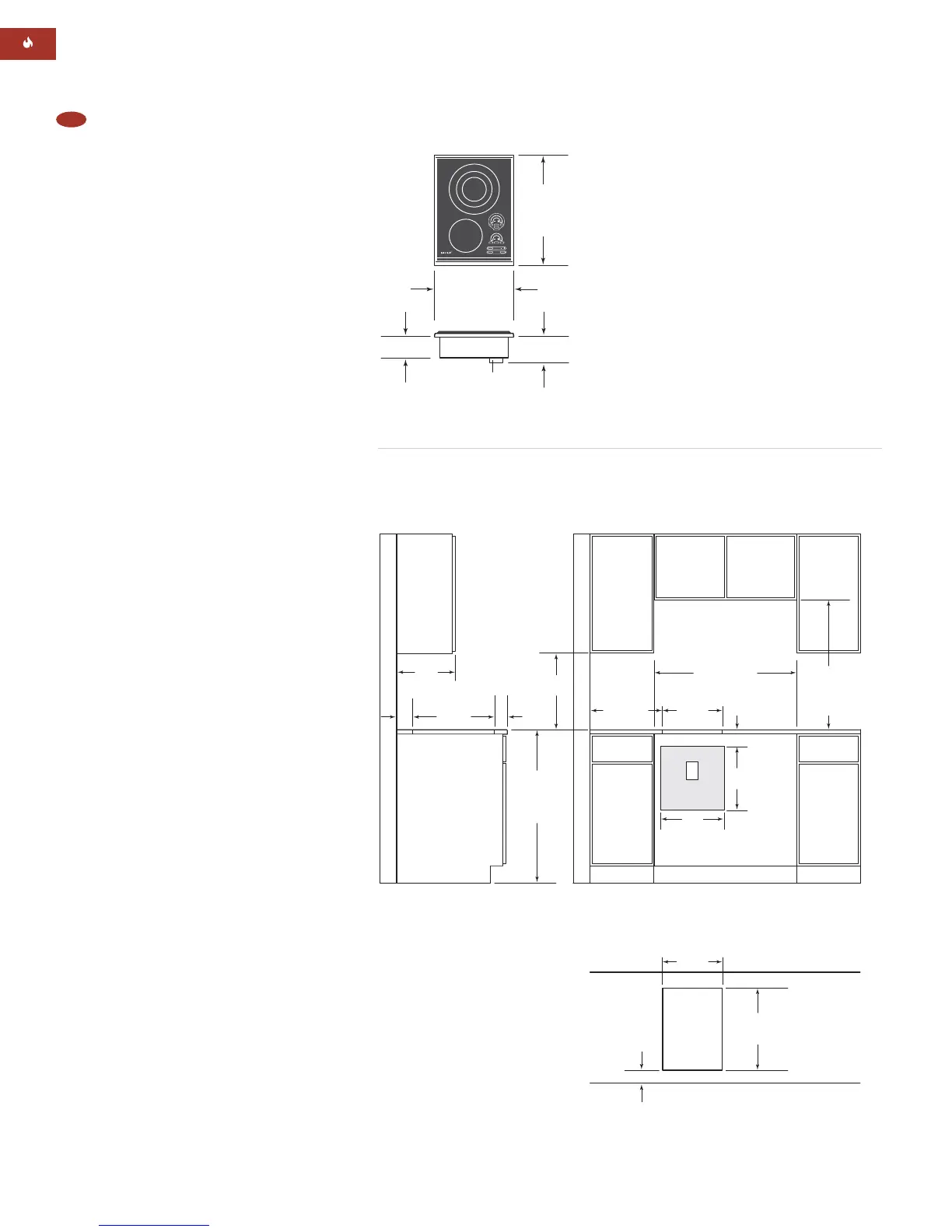 recommended cabinet width for installation of single 15" (381) cooktop or module. *Minimum clearance from both side edges of cooktop cut-ou