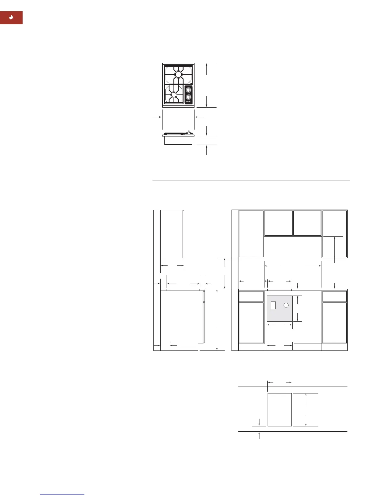 recommended cabinet width for installation of single 15" (381) cooktop or module. *Minimum clearance from both side edges of cooktop cut-ou