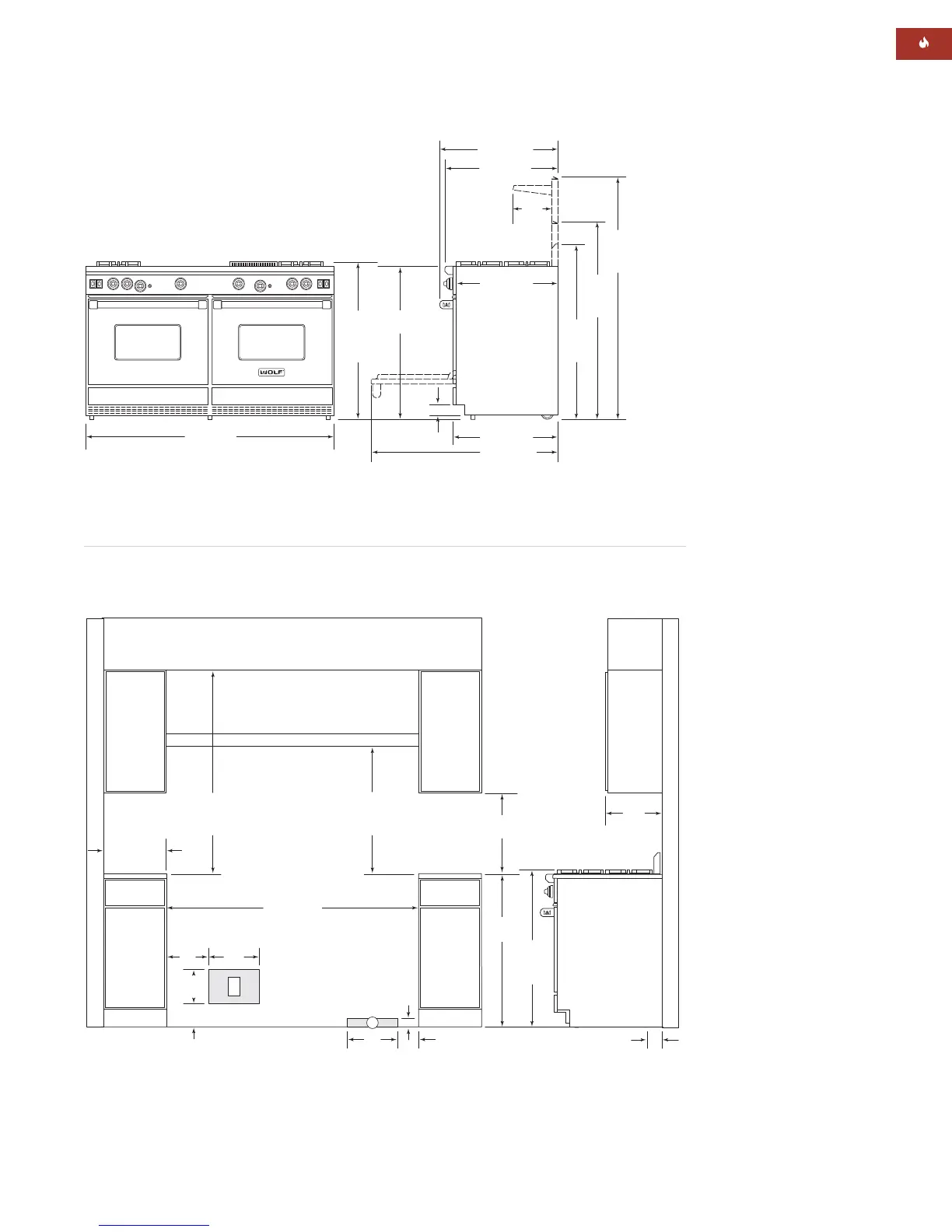 OF RANGE TO COMBUSTIBLE REAR WALL ABOVE COUNTERTOP –