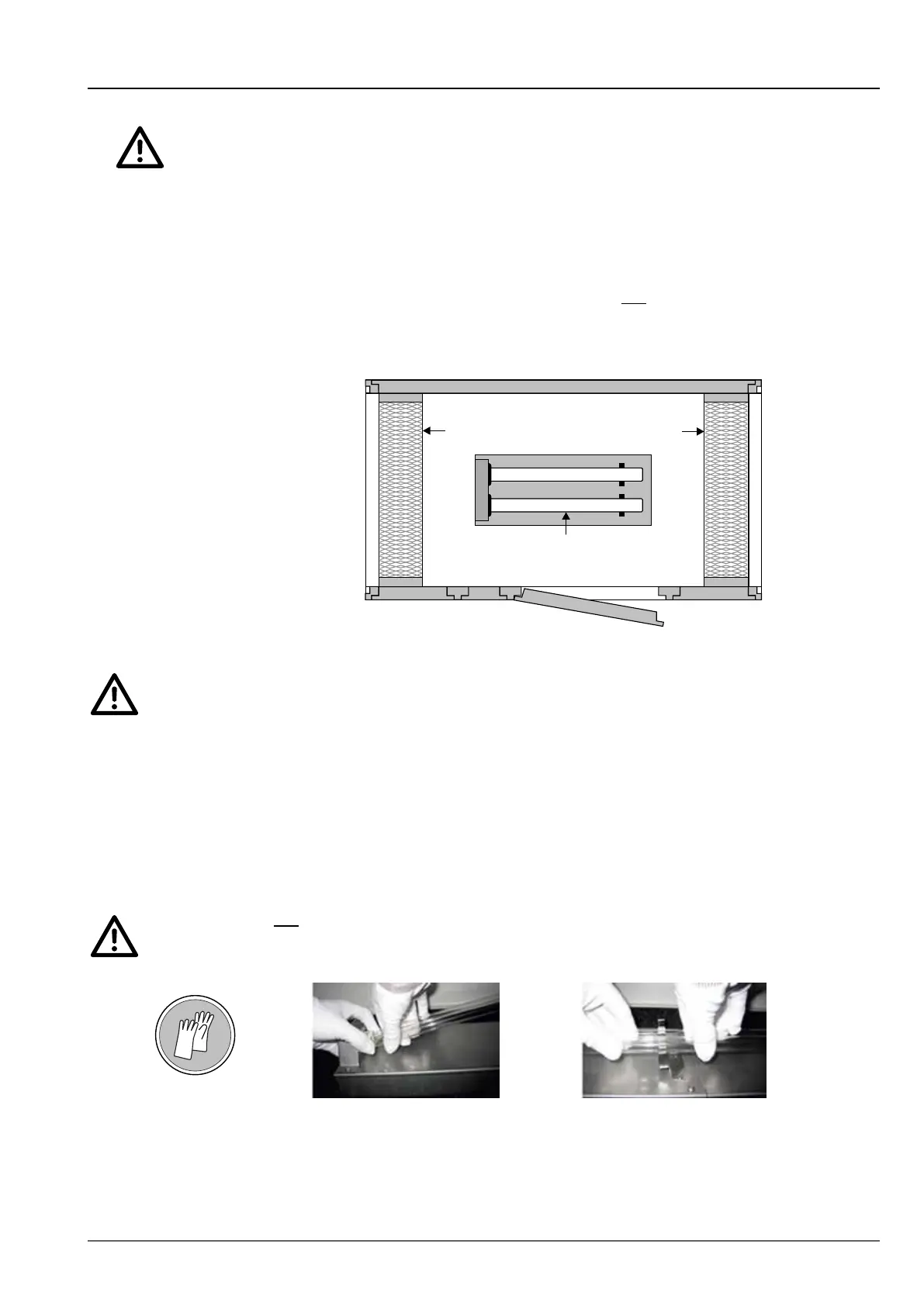 Bär tyghandskar när de nya UVC-lysrören sätts in!