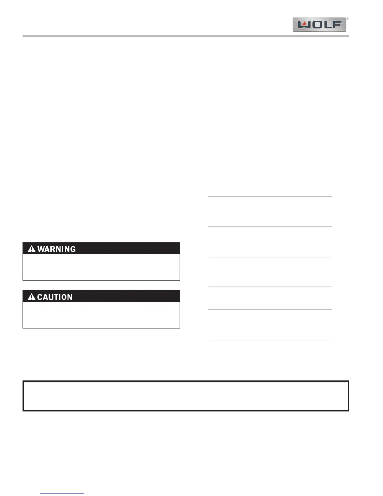 This manual is designed to be used by Authorized Service Personnel only. Wolf Appliance, Inc. assumes