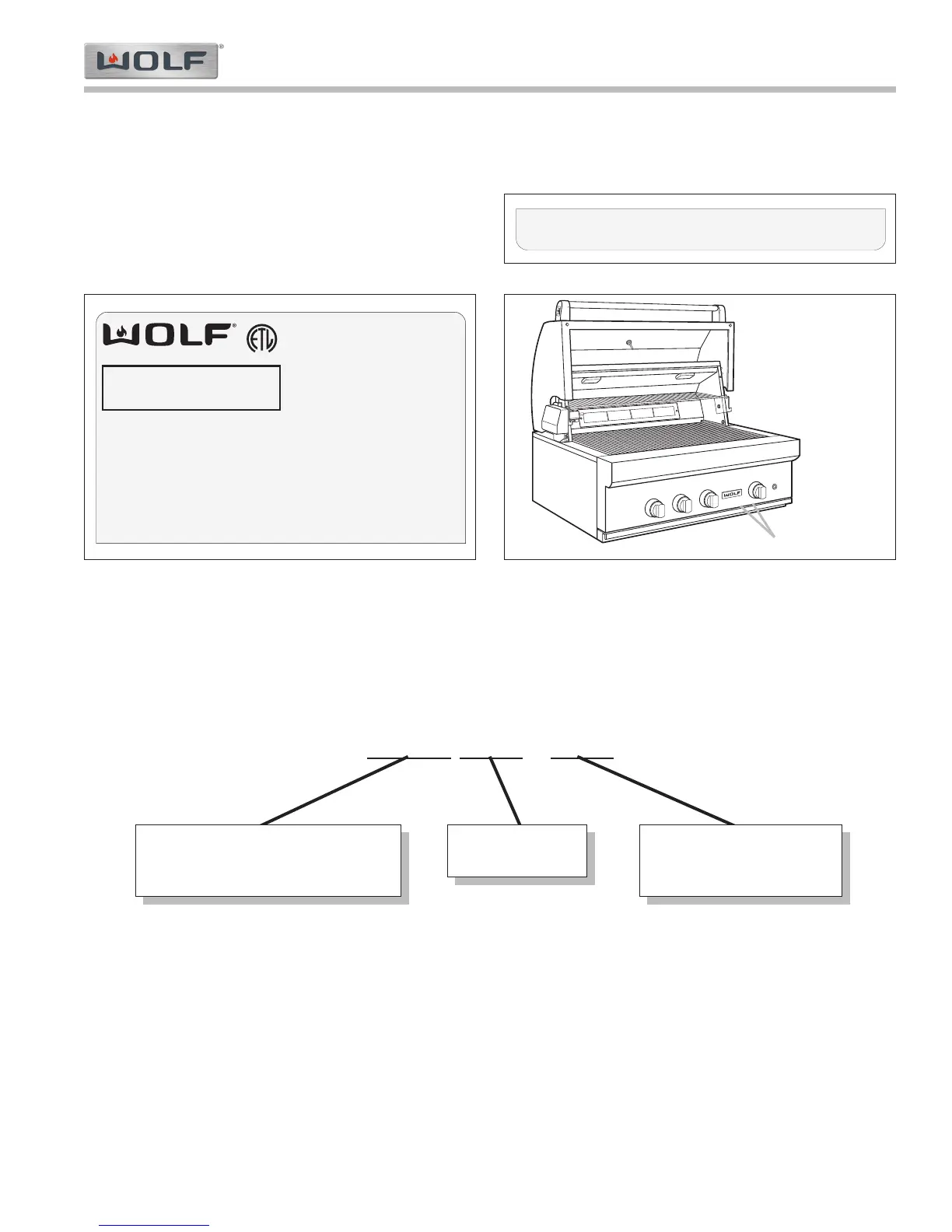 The diagram below explains the model number code of the Outdoor Grill line of products.
