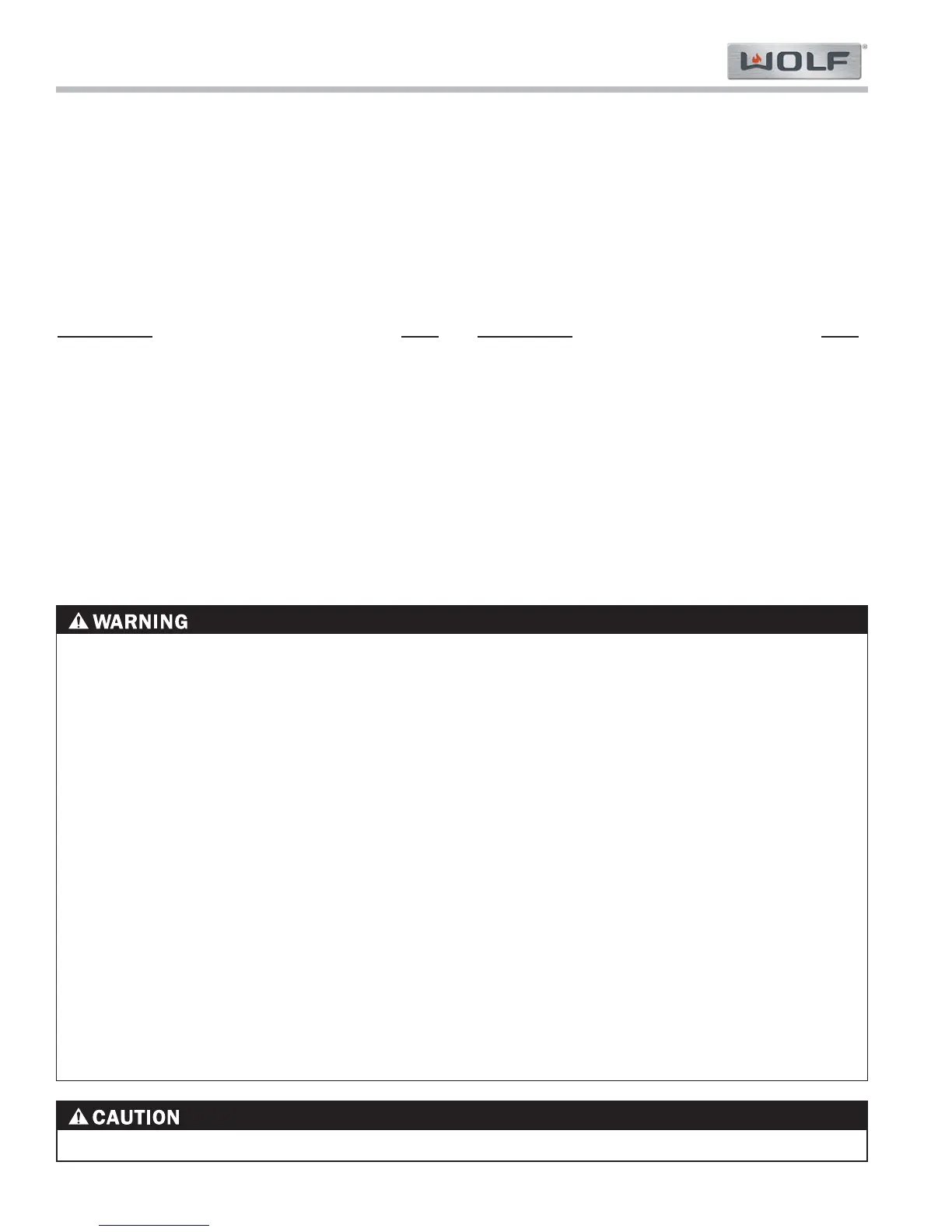 Wolf OG36 - Component Access; Removal; Warnings and Cautions