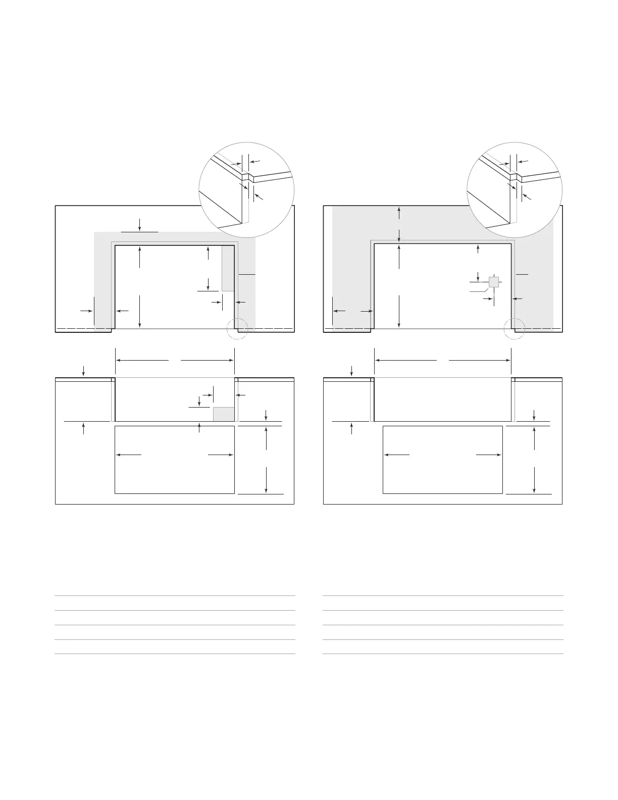 NOTE: Shaded area above countertop indicates minimum clearance to