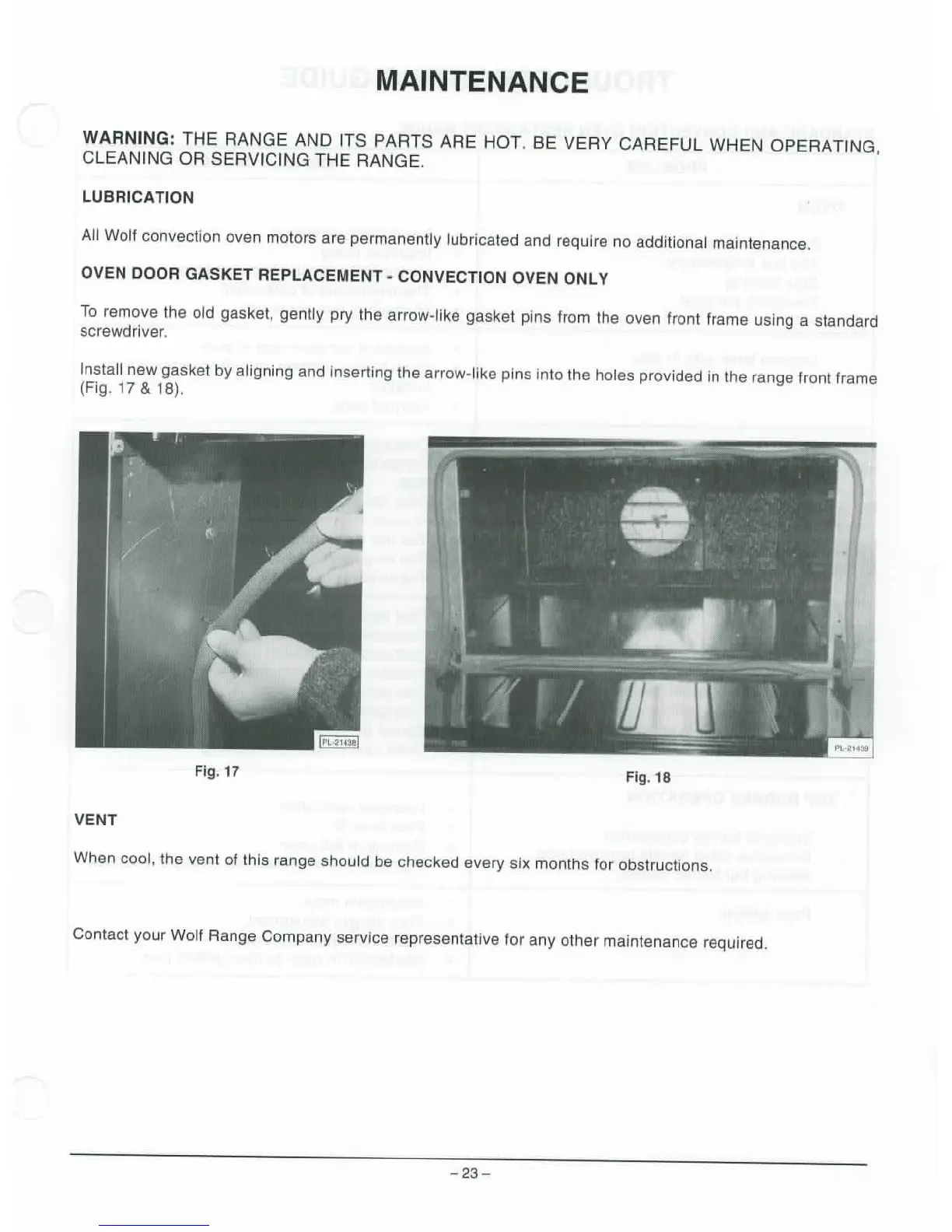 Wolf PACIFIC SERIES - MAINTENANCE; LUBRICATION; OVEN DOOR GASKET REPLACEMENT; VENT