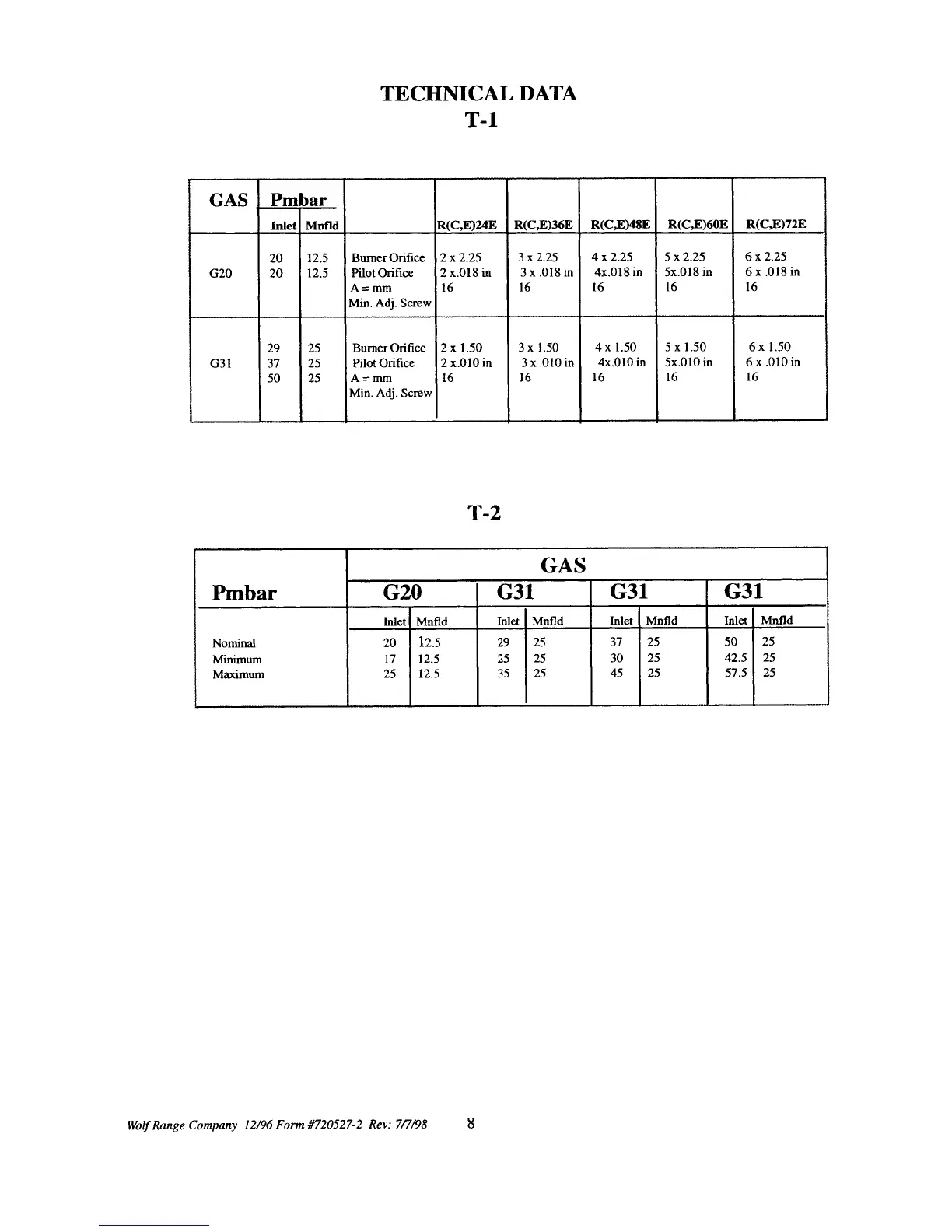 Wolf RC(SIZE)E - TECHNICAL DATA T-1; TECHNICAL DATA T-2