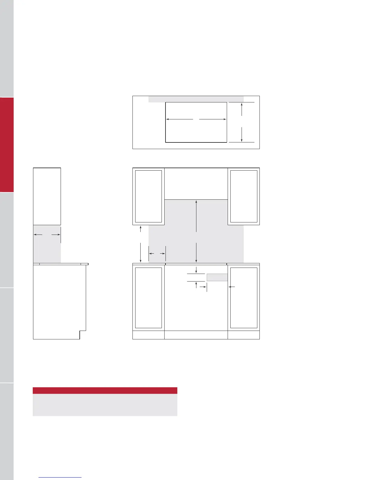 NOTE: Shaded area above countertop indicates minimum clearance to combustible surfaces,