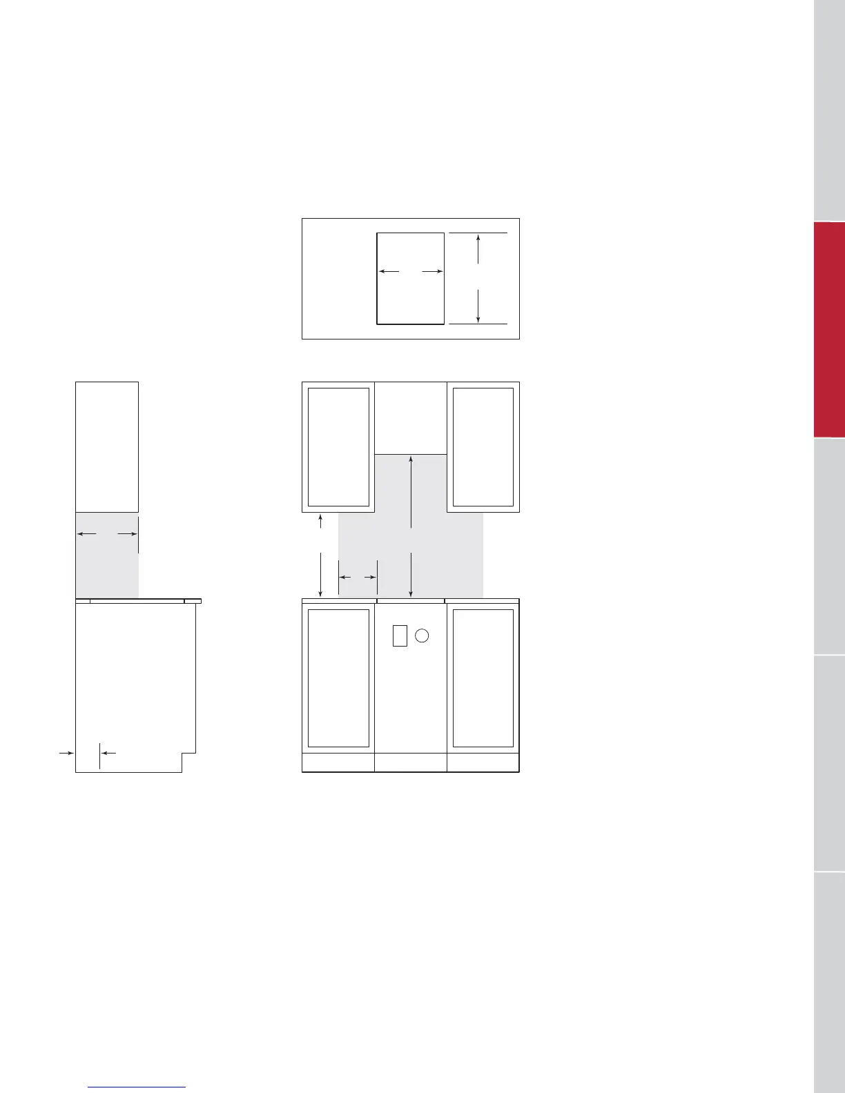 NOTE: Shaded area above countertop indicates minimum clearance to combustible surfaces,