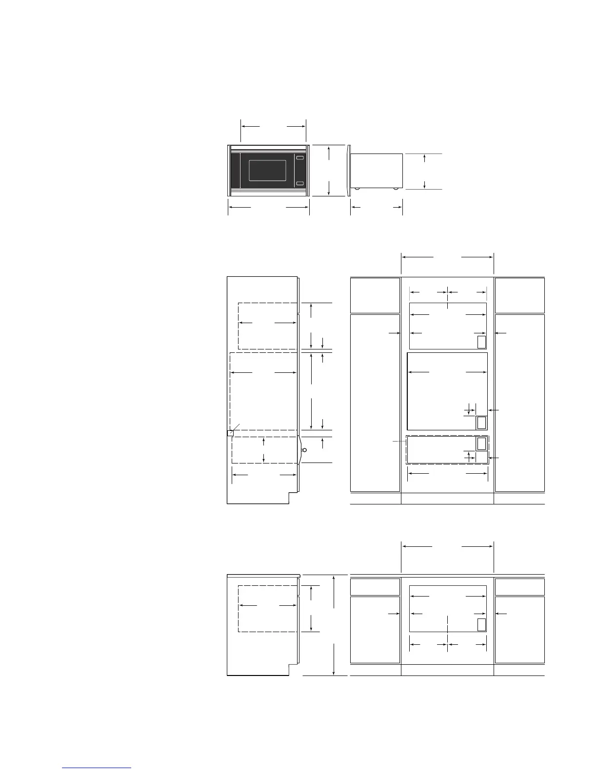 Pre-installation specifications for non-convection microwave oven with 30" (762) trim –