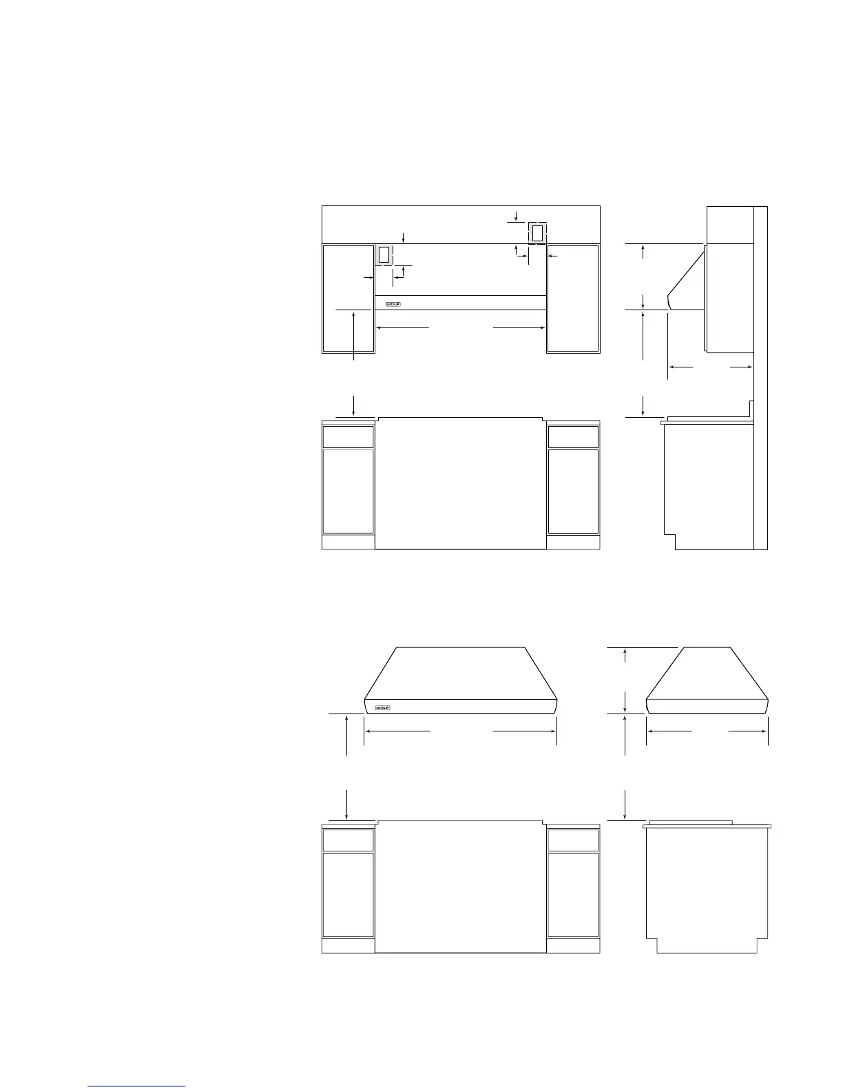 Installation dimensions and electrical placement for Pro Series wall hoods.