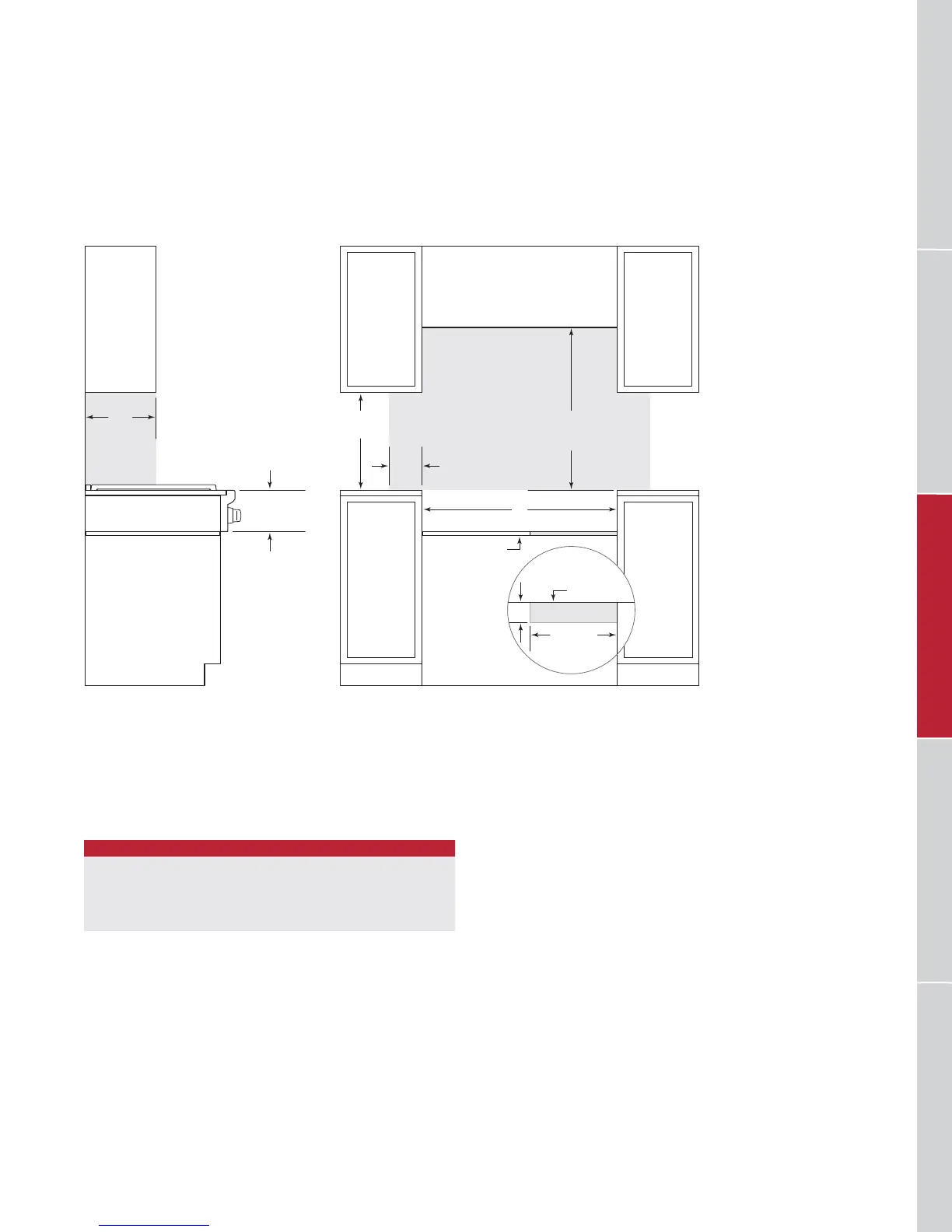 NOTE: Shaded area above countertop indicates minimum clearance to combustible surfaces,