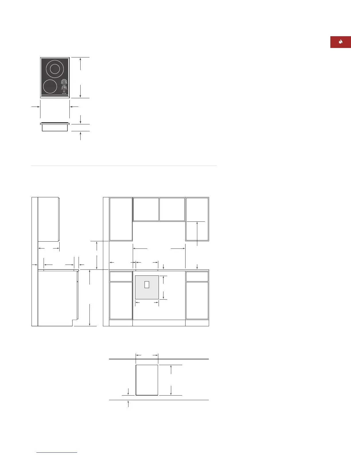 recommended cabinet width for installation of single 381 mm cooktop or module. *Minimum clearance from both side edges of cooktop cut-out
