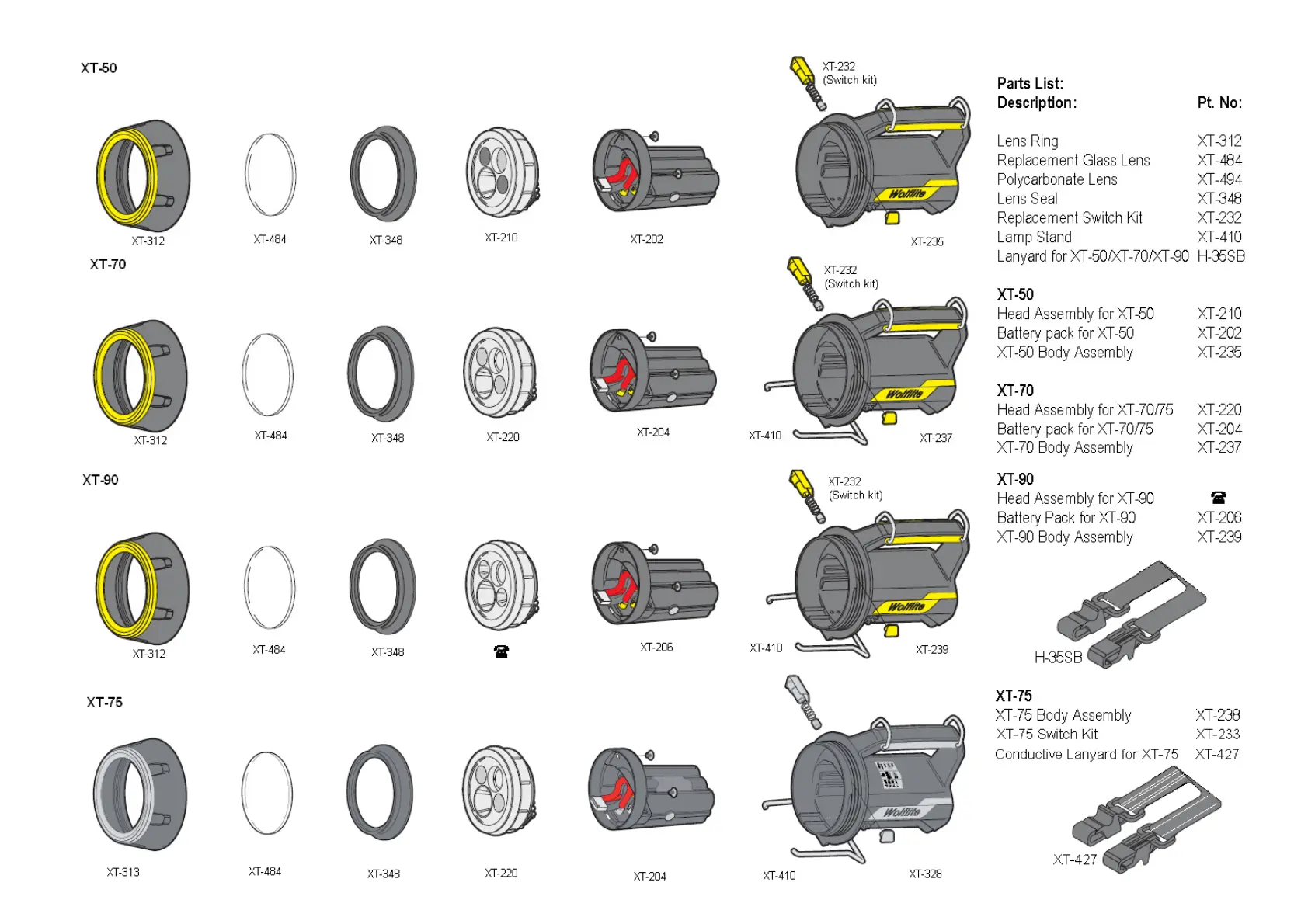 Wolf WOLFLITE XT - Replacement Parts Identification; Parts List for XT Models