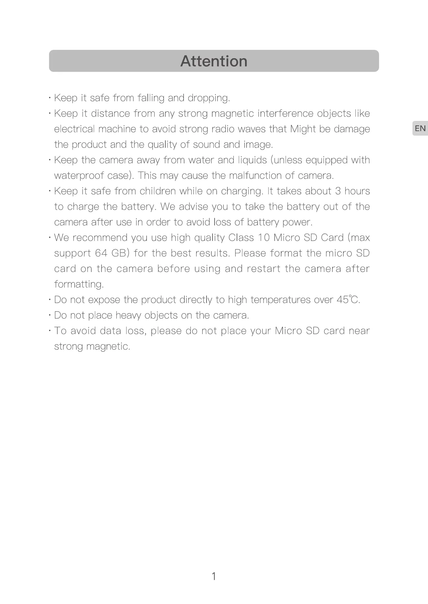 • To avoid data loss, please do not p ace your Micro SD card near
