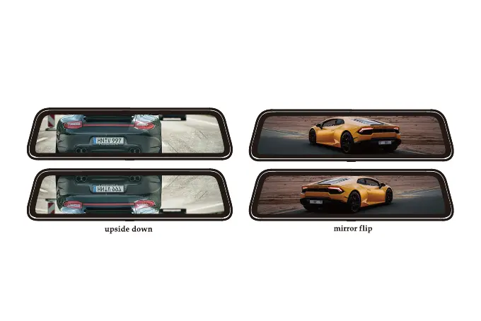 turn on "Upside down of rear image" and turn off "Mirror flip of rear image" to adjust the view.