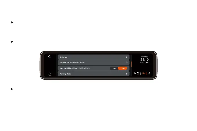 G-Sensor: Select the sensitivity of the G-Sensor or turn it off. The locked files will not be over